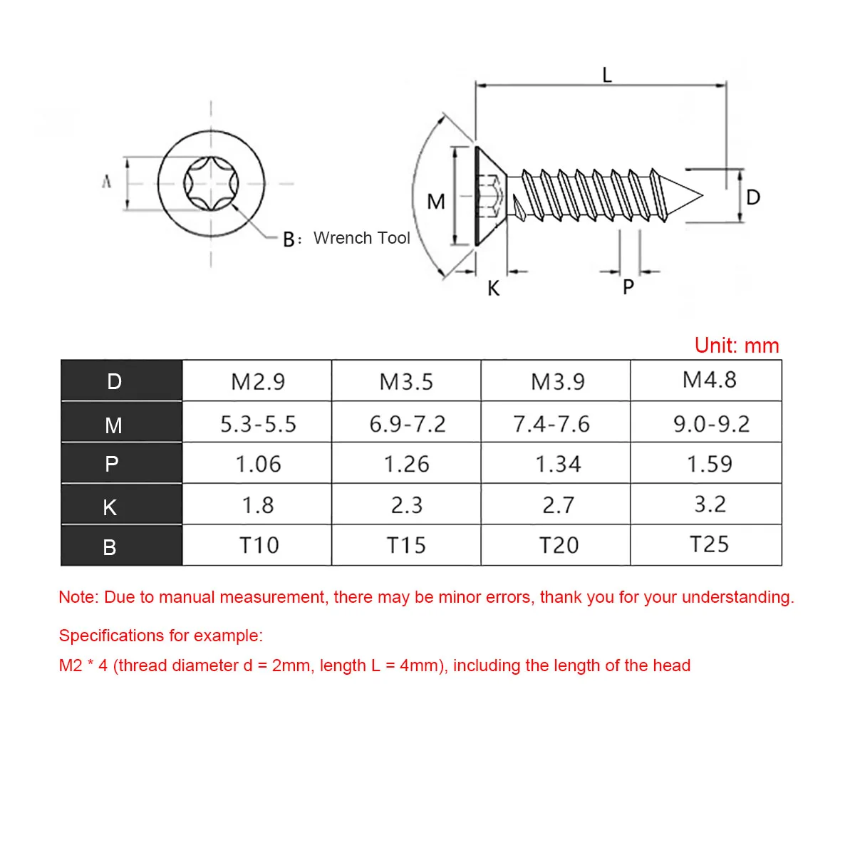 20 шт.лот M2.9 M3.5 M3.9 M4.8 304 шестилопастная звездообразная плоская потайная головка со штифтом Самонарезающий деревянный винт