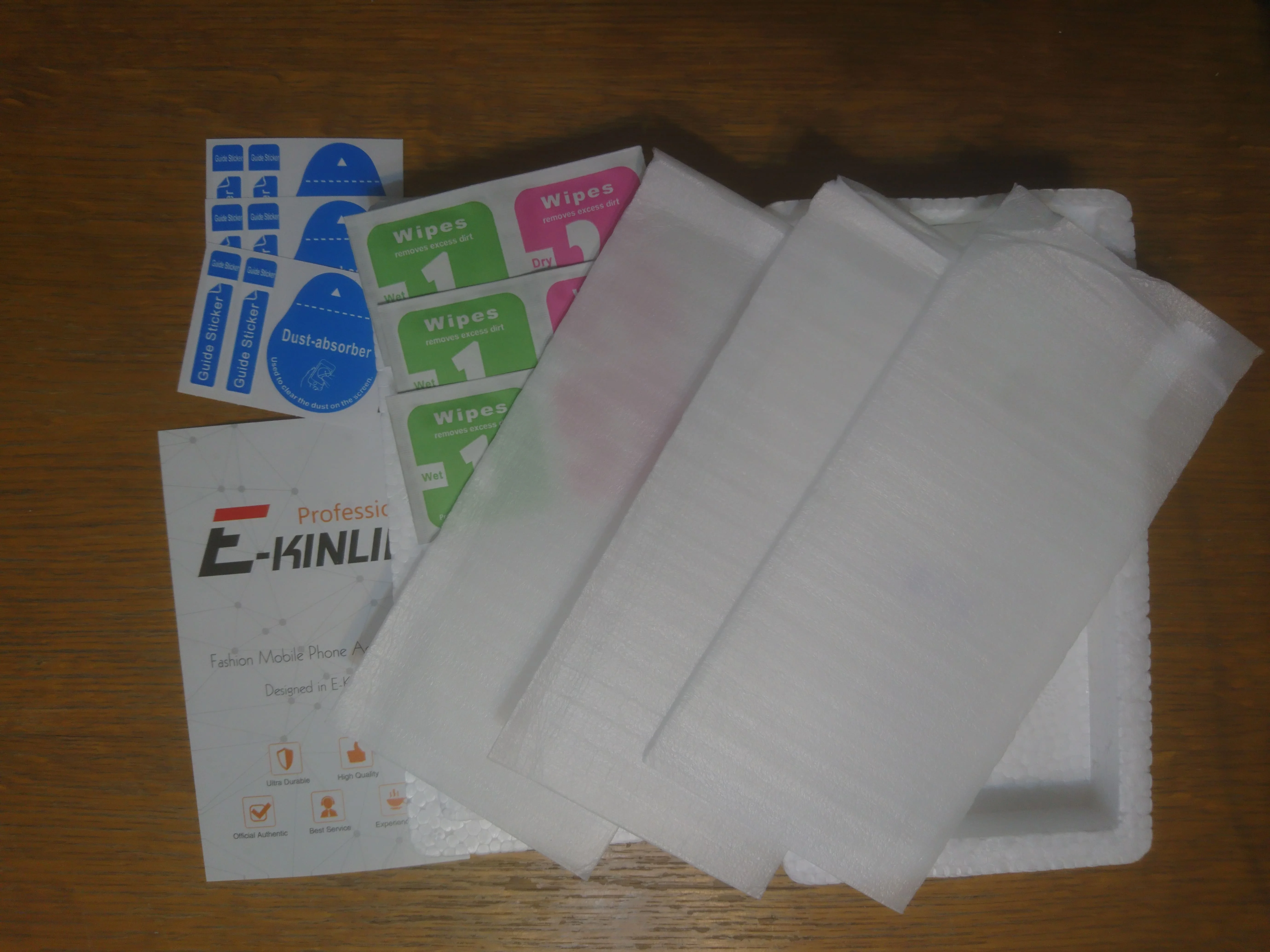 Очень быстро доставлено. Ровно две недели. Товар упакован в толстый пенопласт из двух частей. В комплекте сухие и влажные салфетки, скотч для удаления пылинок, ну и стёкла. Стекла 3 шт. доставлены без повреждений, изгибов, дефектов. Шире, чем аналоги, подозреваю, что края стекла будут нависать над скруглением телефона. К этому можно привыкнуть. Проверить стекло не могу, телефона пока нет.