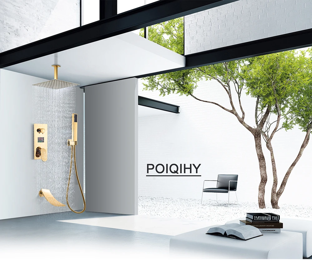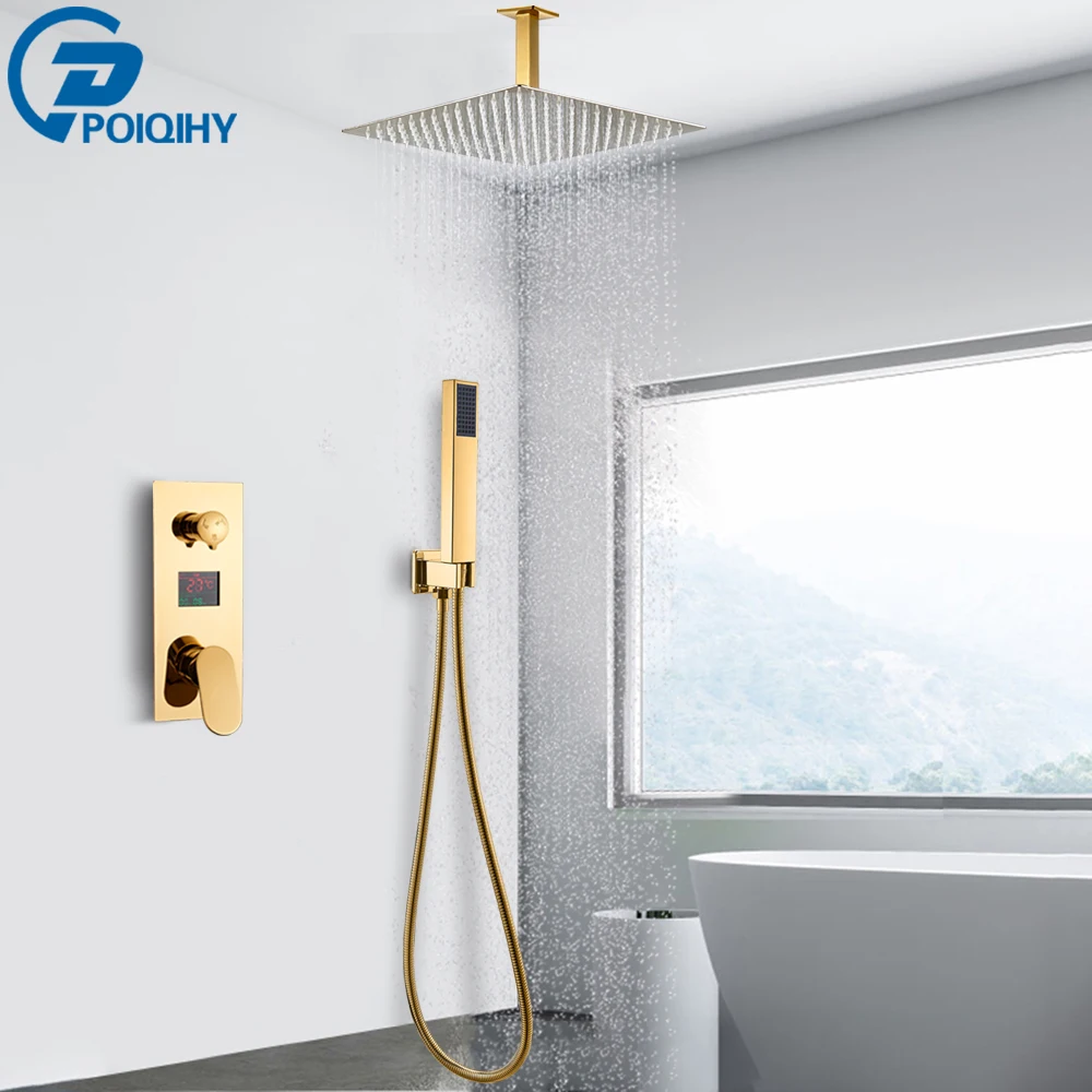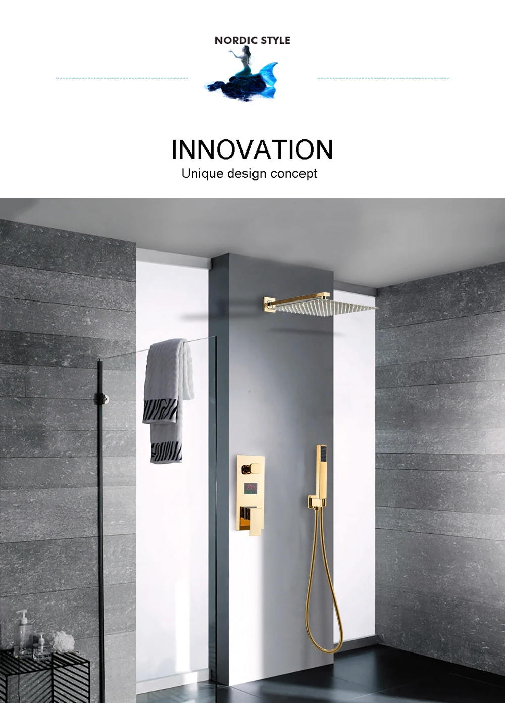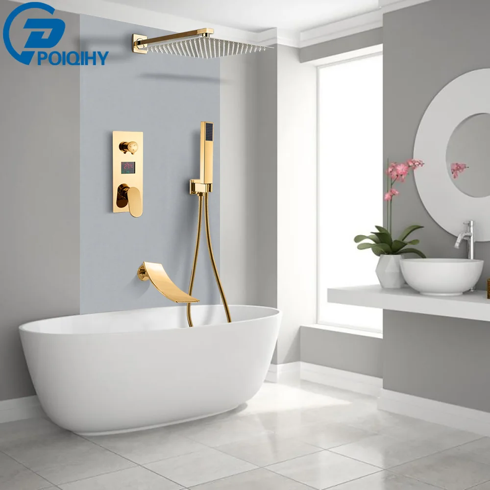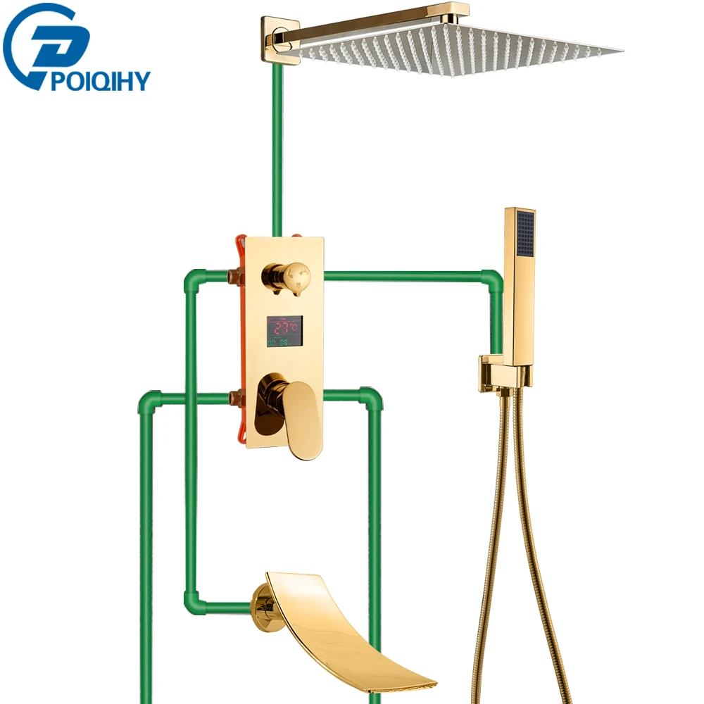 Золотой смеситель для душа Цифровой температурный дисплей смеситель для душа настенный скрытый душевой набор система для душа