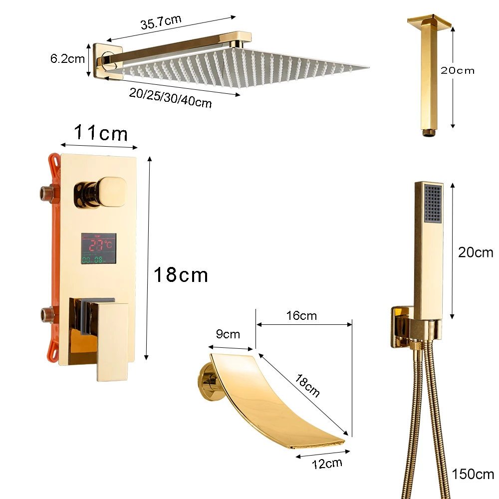 Смеситель для душа, золотой, с цифровым дисплеем температуры