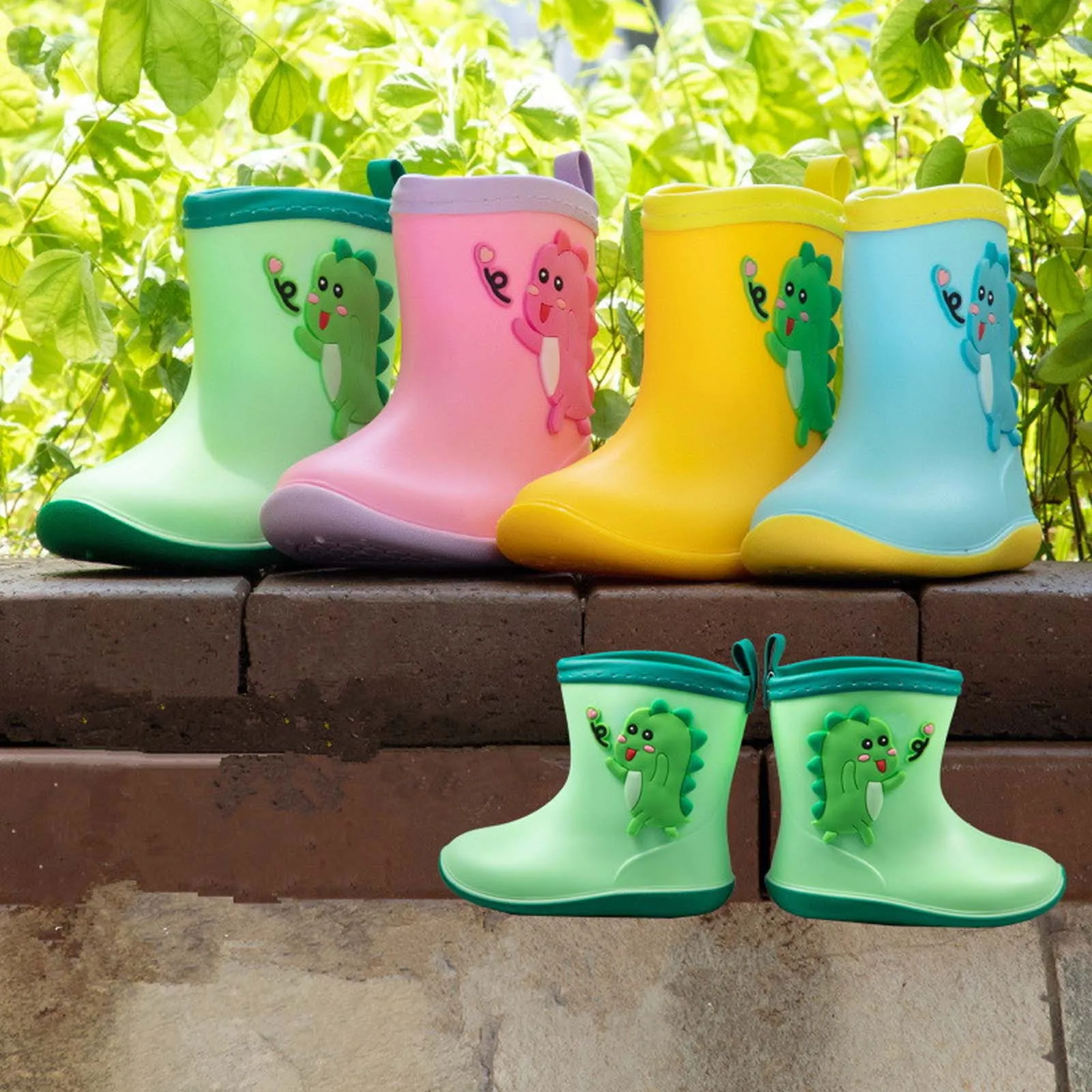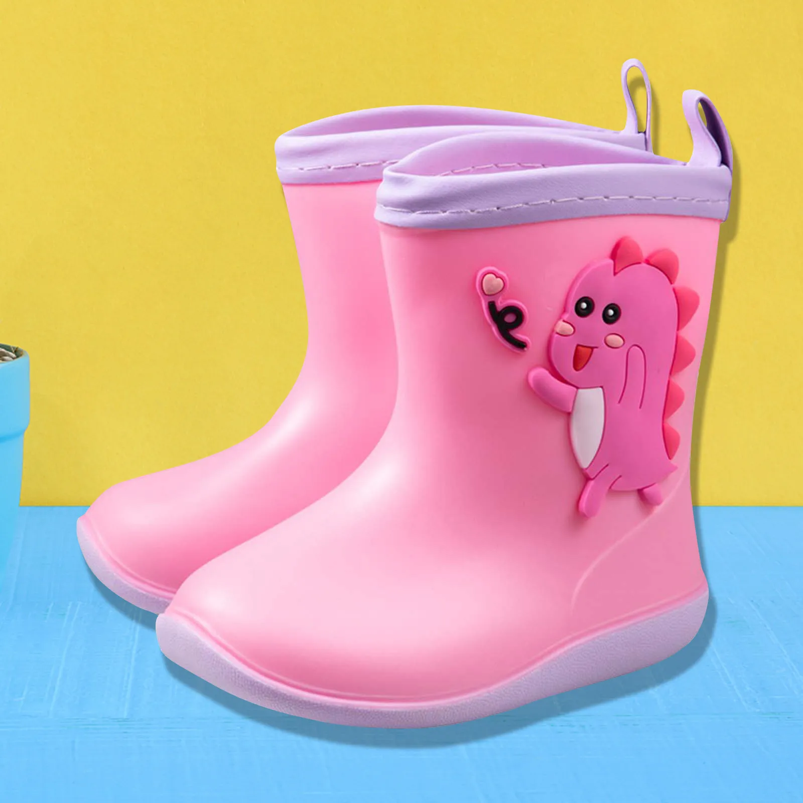 Детские резиновые сапоги для маленьких девочек и мальчиков с милым рисунком динозавра