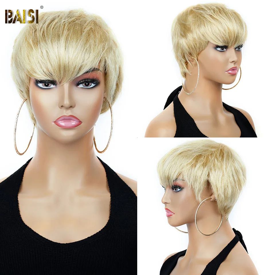 BAISI Прямые короткие парики из человеческих волос, 613 Боб, парики без шнуровки, передние человеческие волосы, парики для женщин, парики без повреждений, полностью автоматические парики