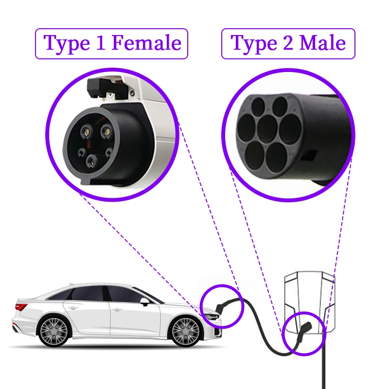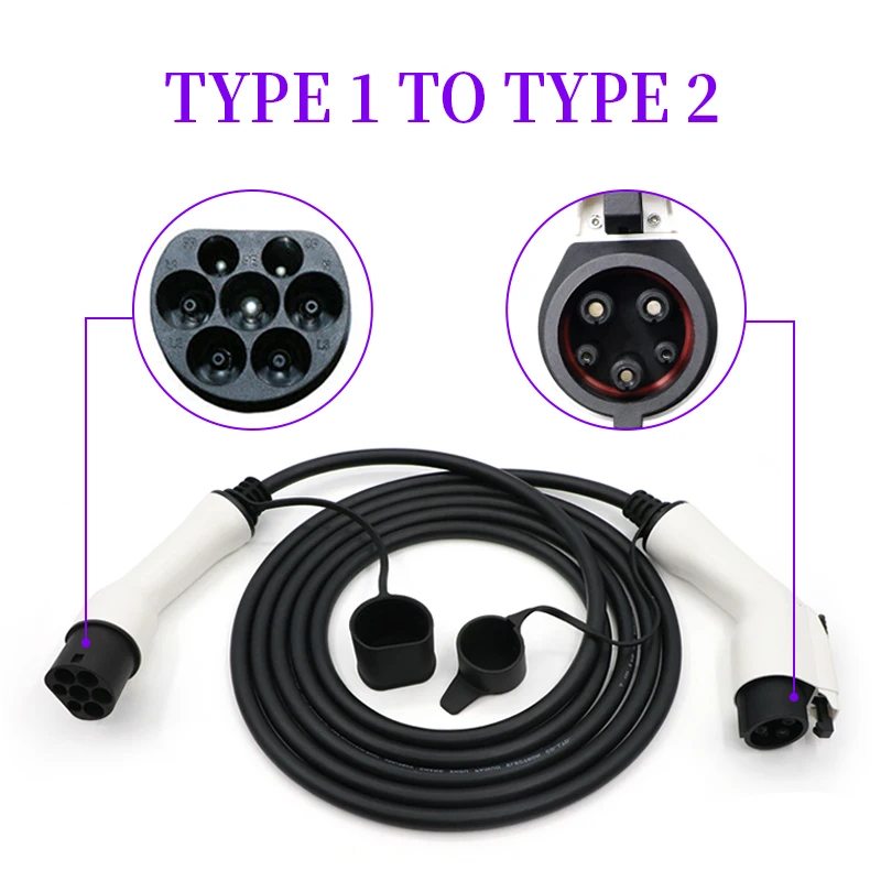 Зарядный кабель для электромобиля, кабель для зарядки с разъемом Мама-папа типа 1 и папа типа 2, 32А, 7,2 кВт, длина фута