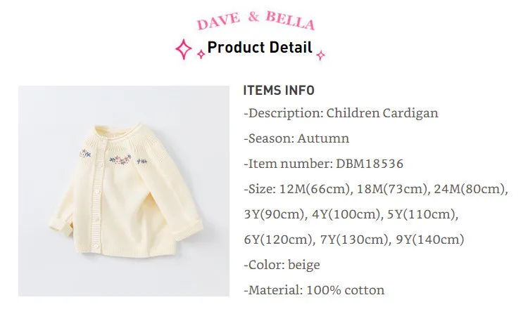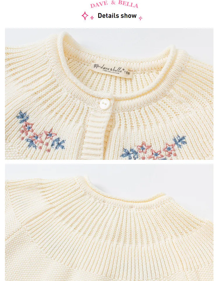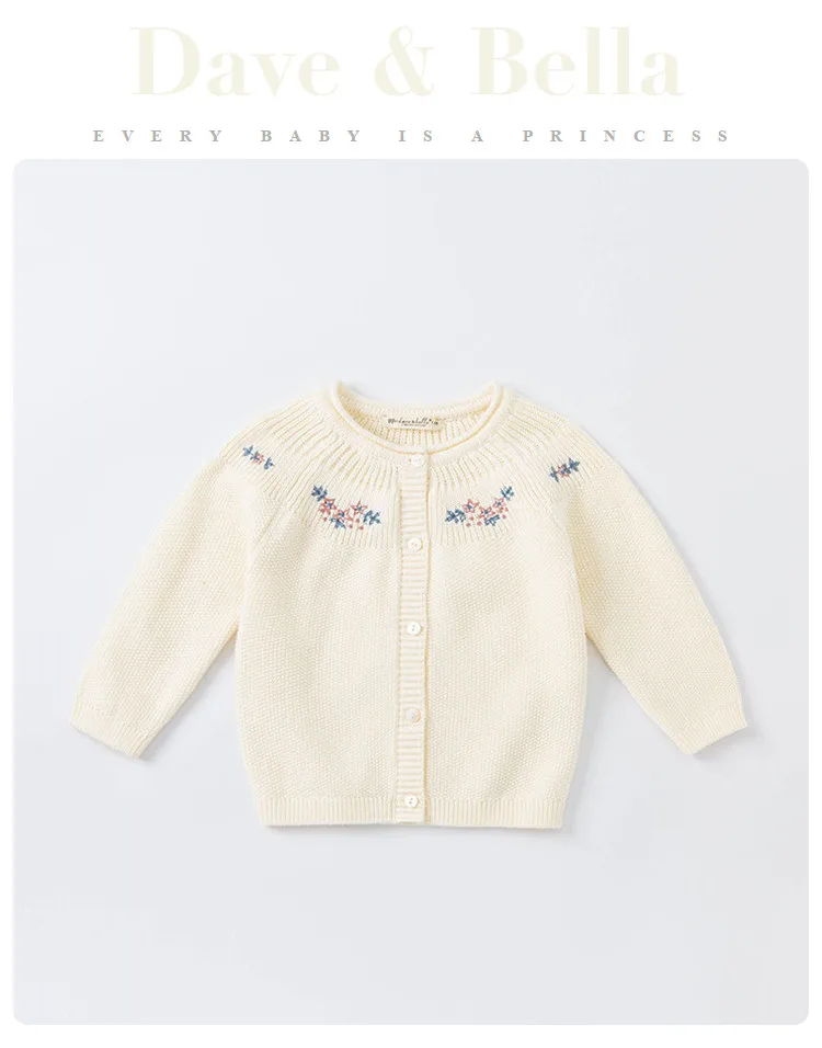 DBM18536 нижнее белье в стиле бренда dave bella, осенняя одежда для детей комплект для маленьких девочек с цветочным принтом кардиган с вышивкой для детей ясельного возраста, пальто для детей, милый вязаный свитер