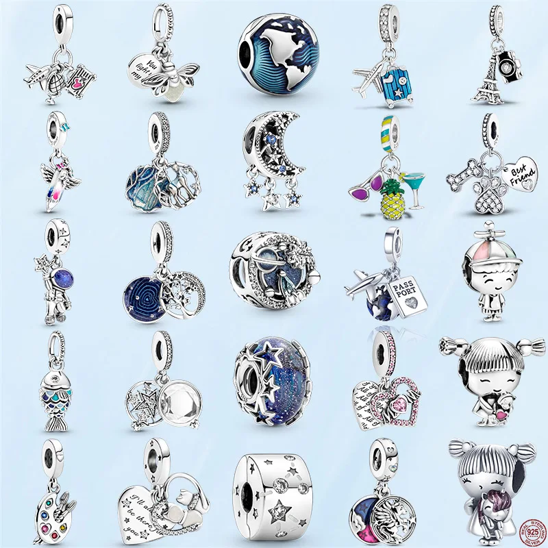 Бусины-подвески серебристого цвета в виде самолета, глобуса, светлячка, подходят для изготовления оригинальных браслетов Pandora, 2022