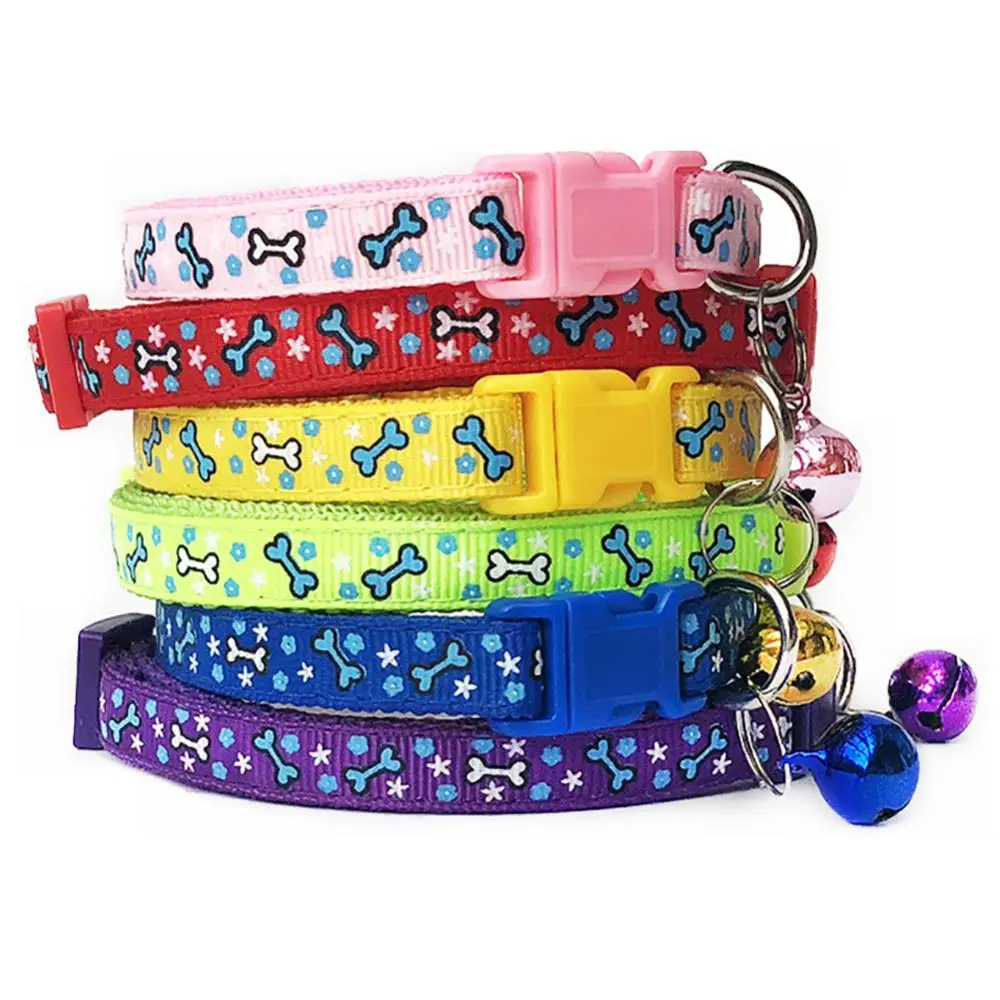 Цветной ошейник ожерелье с кулоном "Кот" с колокольчиком, с принтом собачьей кости, плетеный ошейник, регулируемая застежка, шейный ремень, товары для домашних животных