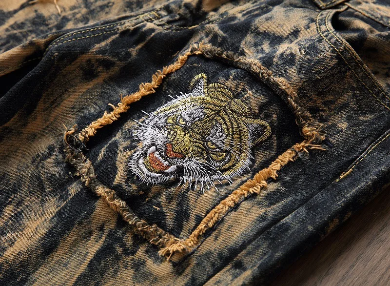 Мужские рваные джинсы стрейч составного кроя с вышивкой, модные пря...