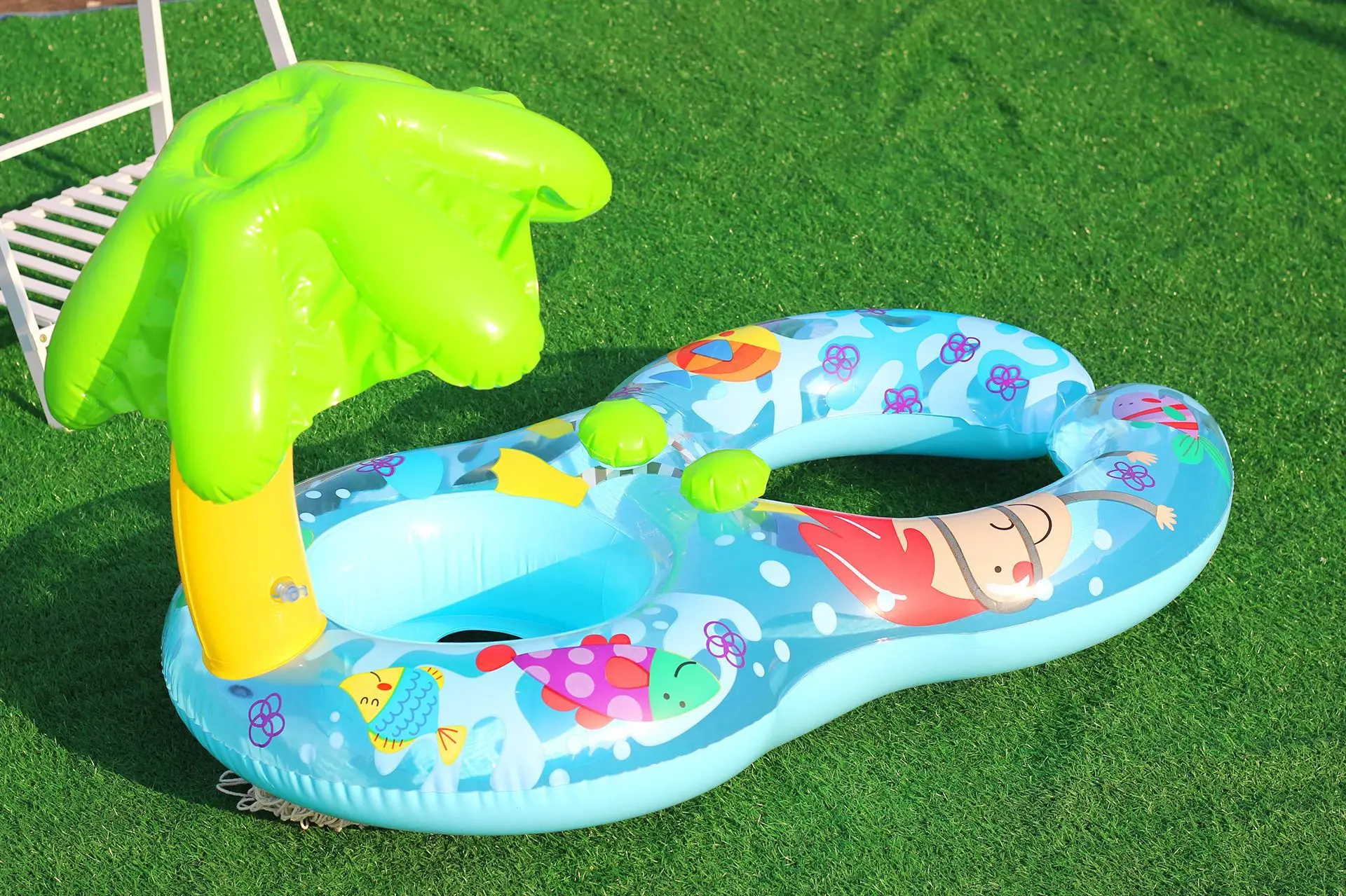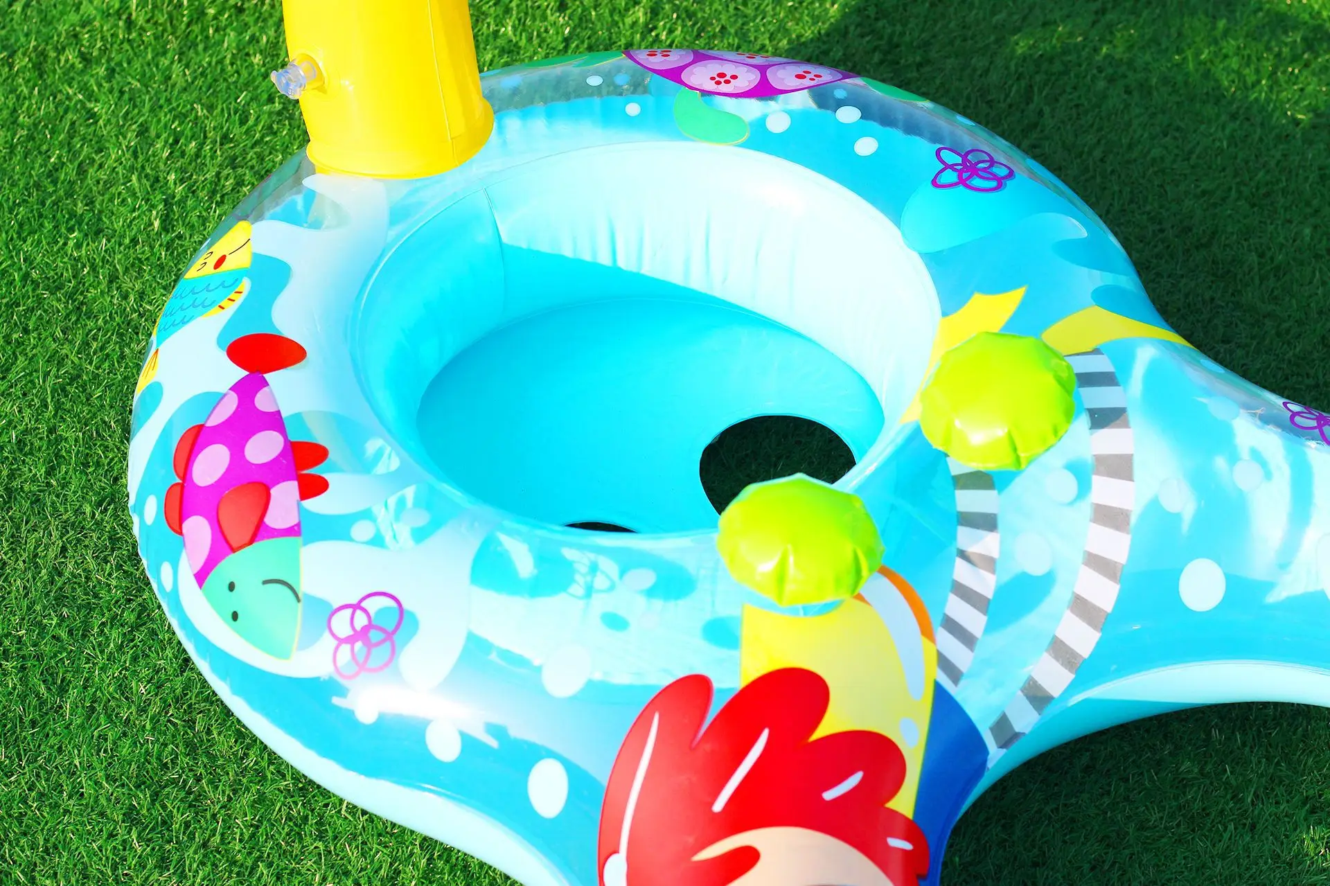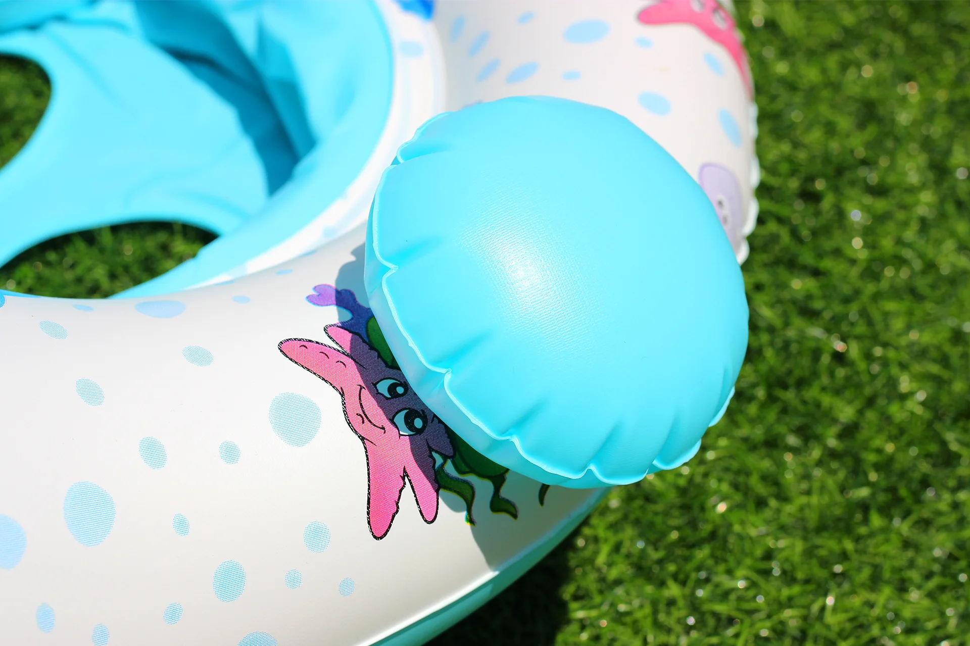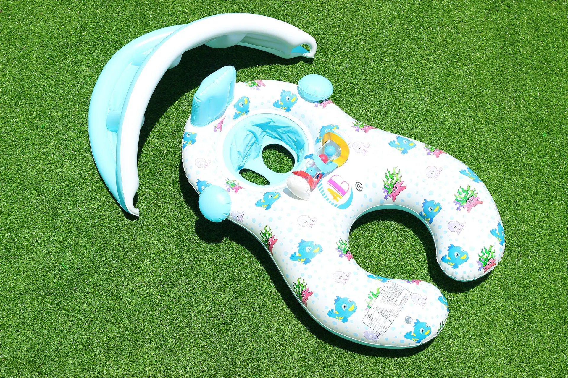 1. Специальный дизайн. Специально разработан для родителей и детей, может быть использован ребенком и родителем одновременно.2. В комплект входит тент от солнца.3. Высокая безопасность. Повышенная спинка, углубленное сиденье, гораздо безопаснее, чем у других плавательных колец.4. Открытие незакрытого кольца. Незакрытое Открытое кольцо для плавания, подходит как для мамы, так и для папы.