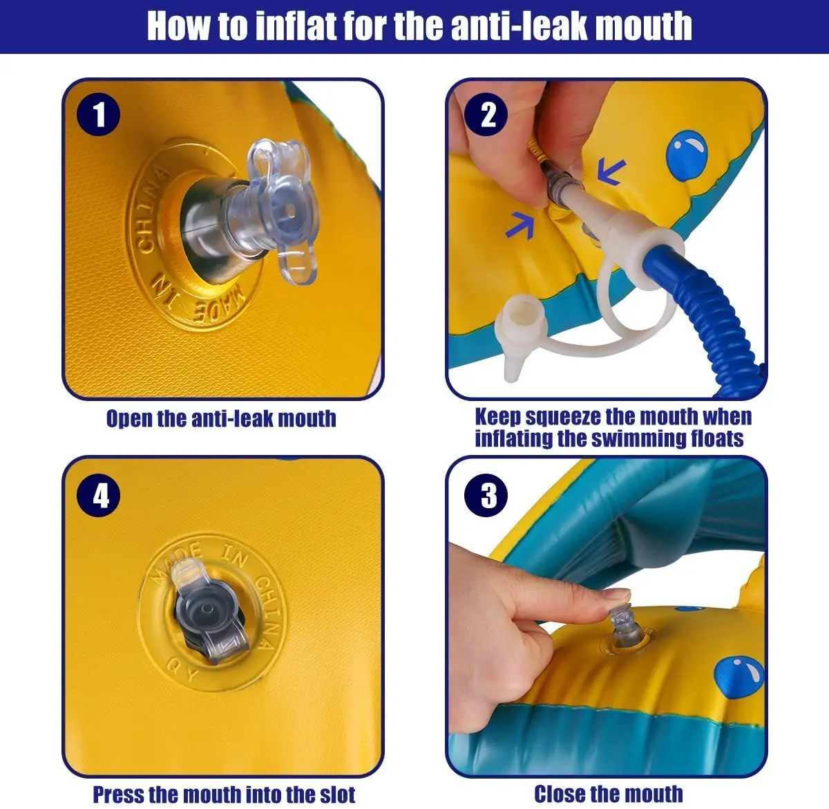 1. Разгладьте плавательное кольцо перед надуванием. Во время надувания сначала заполните боковую часть взрослого, затем заполните боковую часть ребенка.2. Надуйте до 80% всего купального кольца, пожалуйста, обратите внимание, что детская сторона с меньшим количеством воздуха.3. Оставьте его на около 20 минут после надувания воздухом и убедитесь, что продукт не протекает перед использованием.