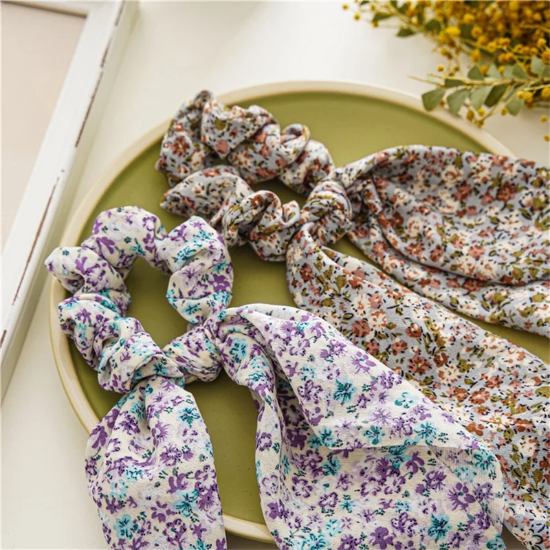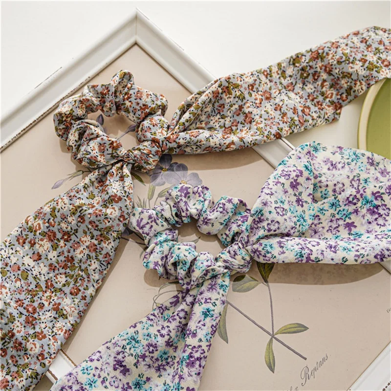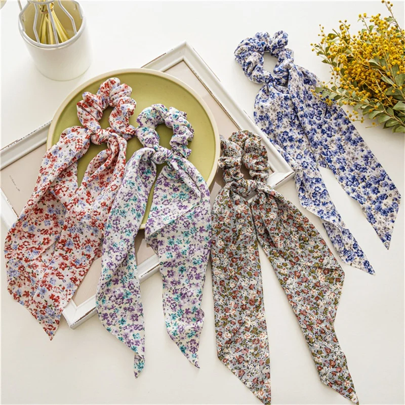 Цветочные резинки для волос, эластичная повязка для волос, прекрасный шарф для волос, модная Длинная лента, резинка для волос для женщин, аксессуары для волос для девочек