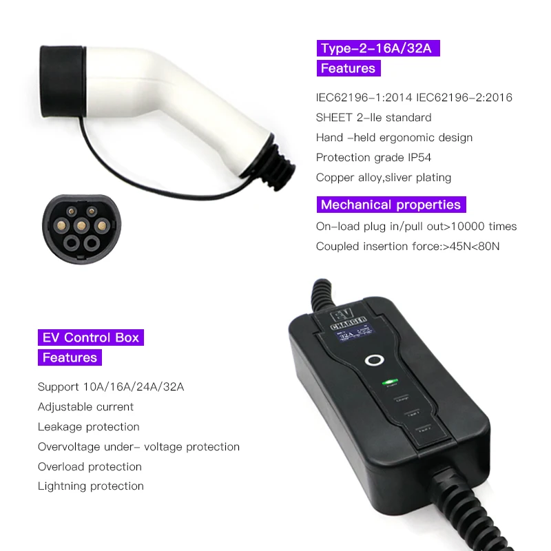 Зарядное устройство IEC 62196-2 типа 2 для электромобилей, 32A 1P E...