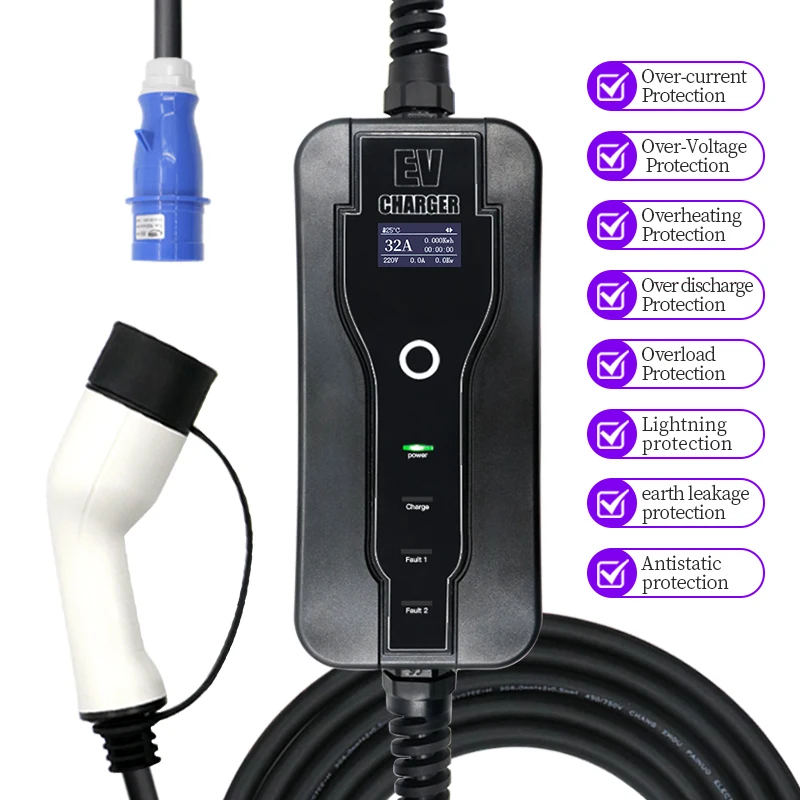 32A Регулируемый IEC62196 Тип 2 EVSE домашний портативный EV зарядн...
