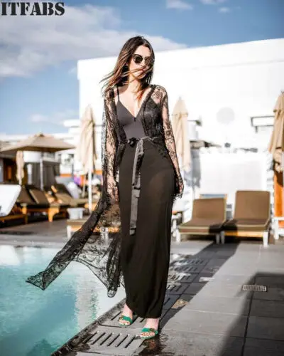 2019 черный, белый цвет для женщин кружева цветочный кардиган Пляжное длинное платье комбинезон сексуальное бикини Cover Up Солнцезащитная пляжная одежда