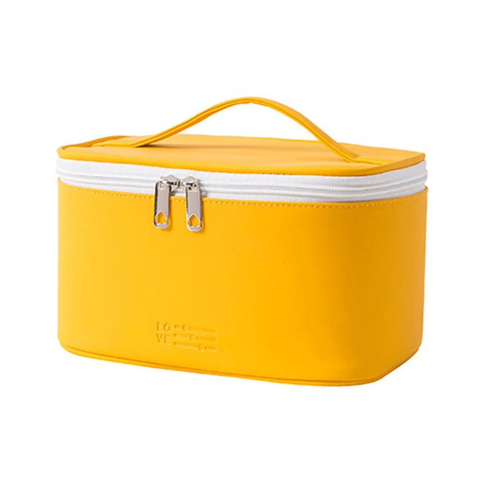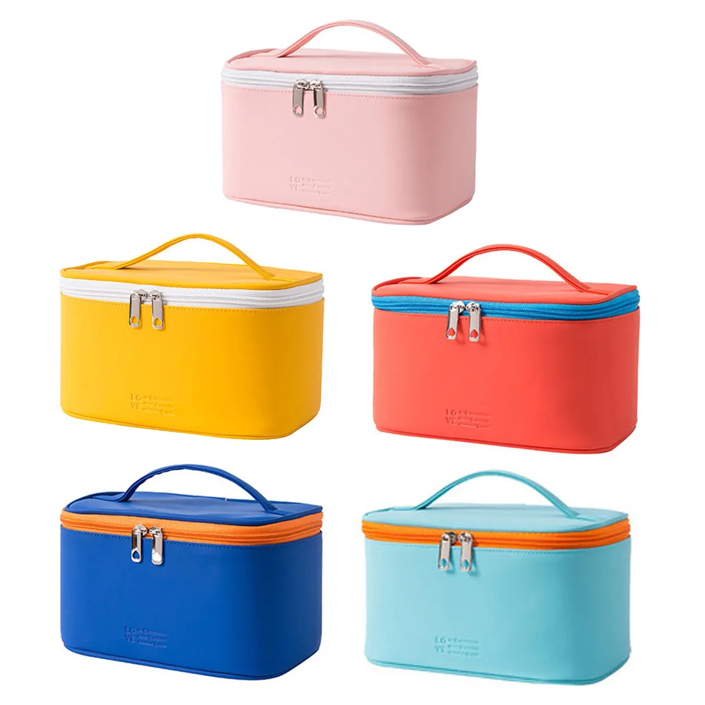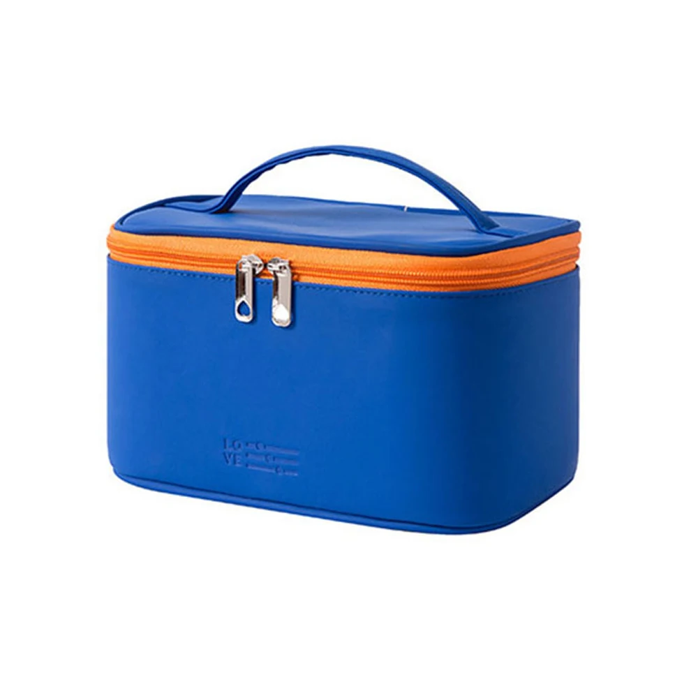 100% NEW AND HIGH QUALITYHigh Quality material:Cosmetic case made of high-quality PU leather material, the surface is waterproof of our cosmetic bag, easy to clean. No worries for messy leaksUnique design: Prite makeup bag with Wide handle for easy carrying and there are five storage spaces on the upper part, it can hold your eyeliner, eyebrow pencil and make-up brushes.Perfect for your travels and organization of your make up. Stylish and vibrant color looks neat and unique.Large capacity: This makeup bag is lightweight perfect for storing all kinds of beauty essentials,enough to hold everything securely you need for your travel.Application: Ideal for travel,business trip,vacation,gym,camping,bathroom organization and outdoor activity, its a functional makeup bag, cosmetic bag, travel organizer bagSPECIFICATION:Material:PU LeatherSize:22*12*14cmColor:Light Blue,Dark Blue,Orange,Pink,Red AvailableQuantity:1 Pc Package Included:1 Pc Cosmetic Bags