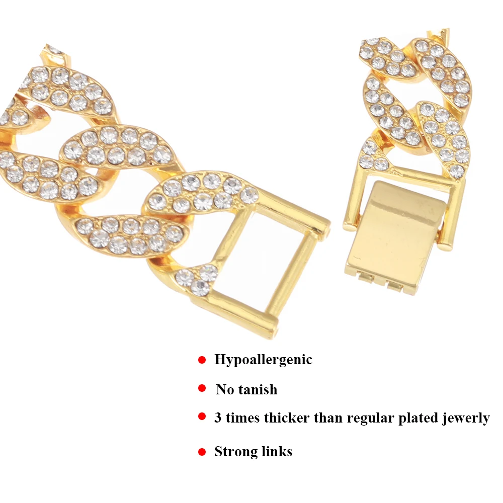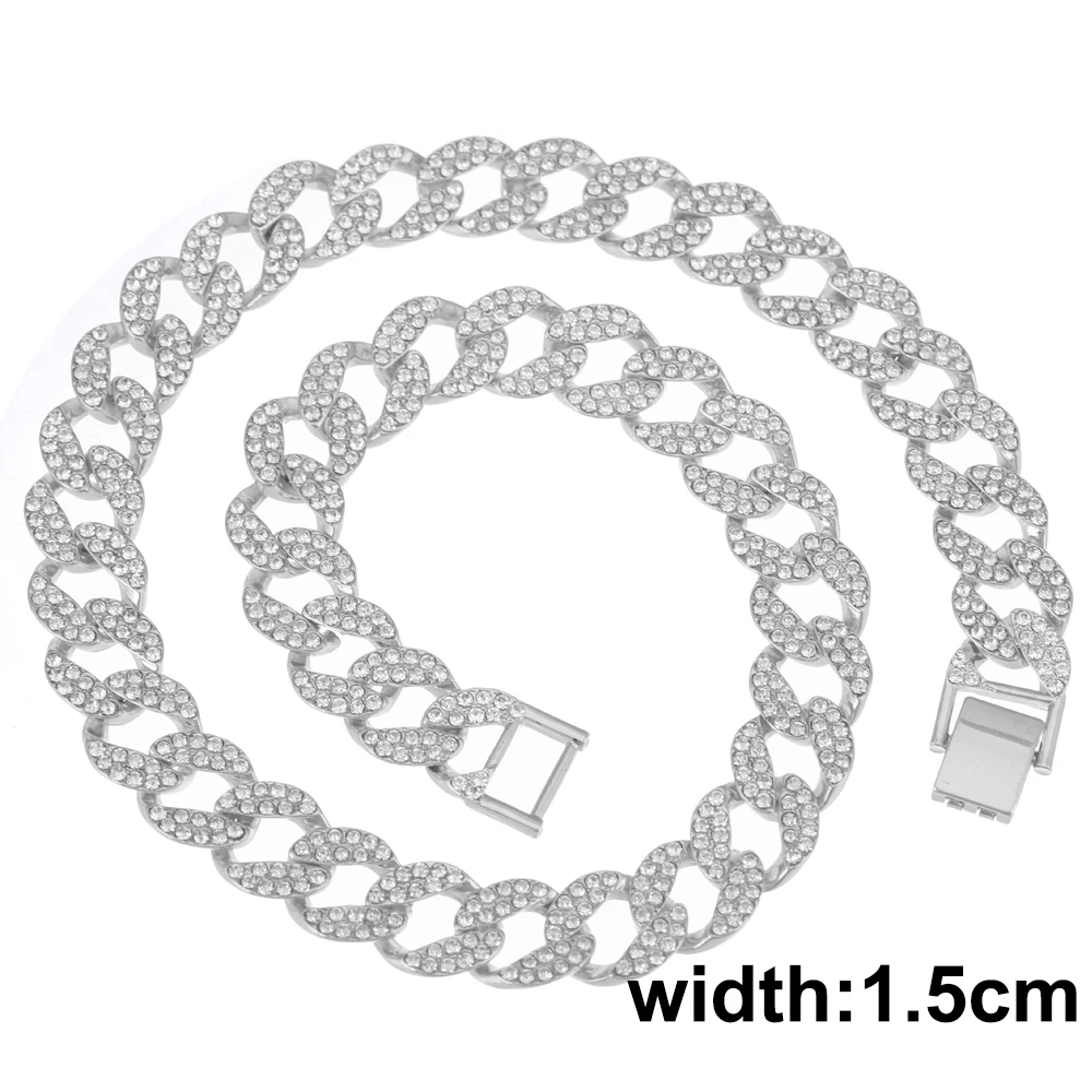 2021 модный роскошный 15 мм сверкающий браслет-цепочка из кубинской цепи для женщин и мужчин Золотой Серебряный цвет Bling Стразы браслет ювелирные изделия A +