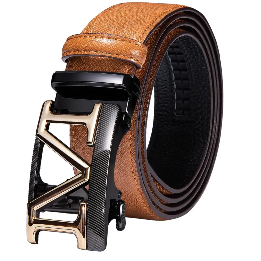 Ремень мужской кожаный с автоматической пряжкой, золотого, черного ...