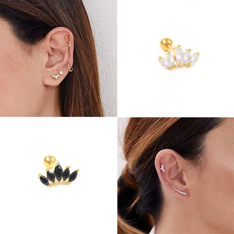 2021 тренд разноцветные овальные циркон серьги, Надеваемые На ушной хрящ 925 стерлингового серебра мини серьги-гвоздики в виде капель с кристаллами в форме женщины Aretes слуховая косточка мочки уха Пряжка