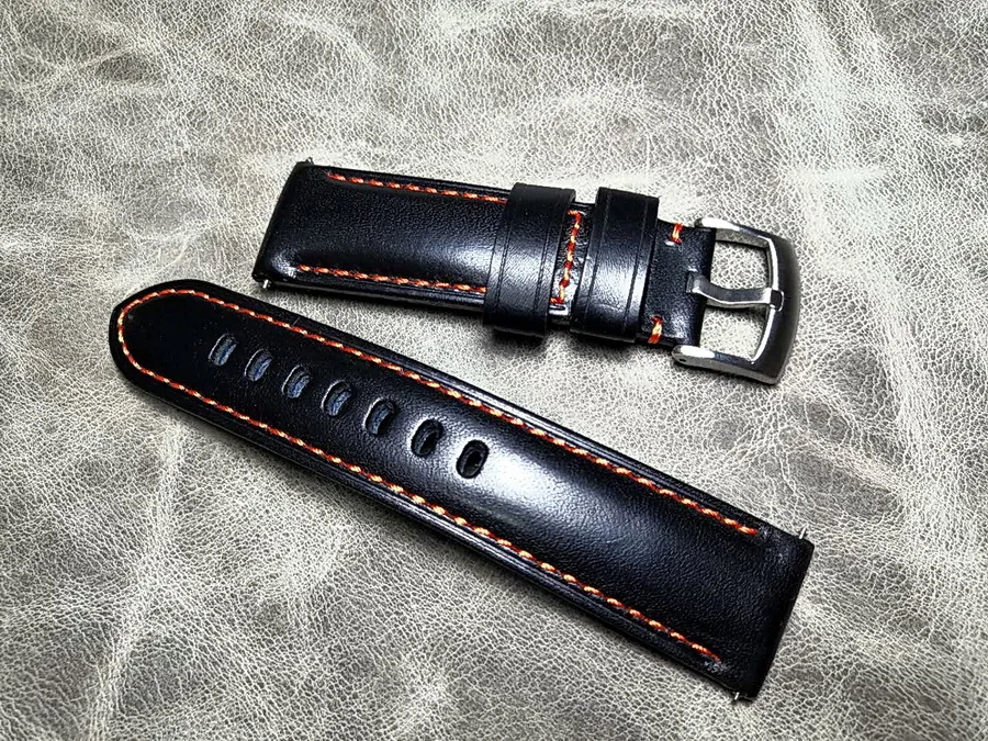 Высококачественный Итальянский черный кожаный ремешок ручной работы...