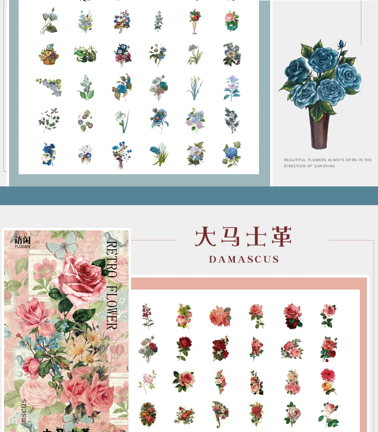 60 шт.лот, акварельные винтажные Цветочные наклейки с растениями, наклейки для ноутбука, скрапбукинг, журнал, планировщик, изготовление карт