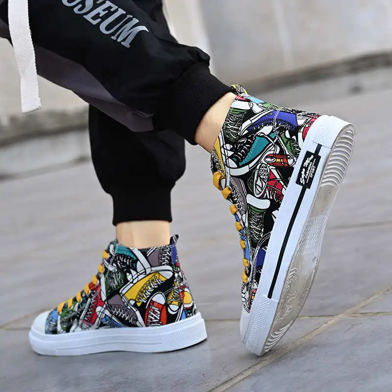 Спортивная обувь с высоким верхом, граффити, парусиновые кроссовки ...