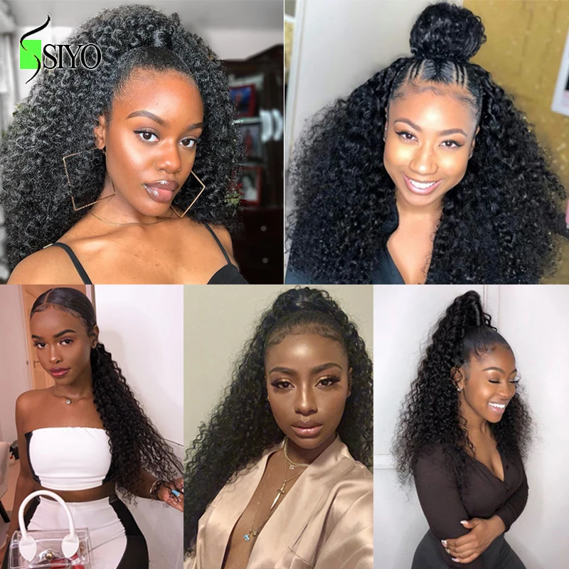 SIYO афро кудрявые конский хвост бразильские человеческие волосы ку...