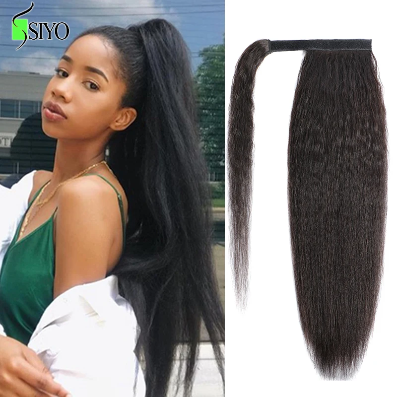 Siyo, курчавые прямые человеческие волосы для конского хвоста, браз...