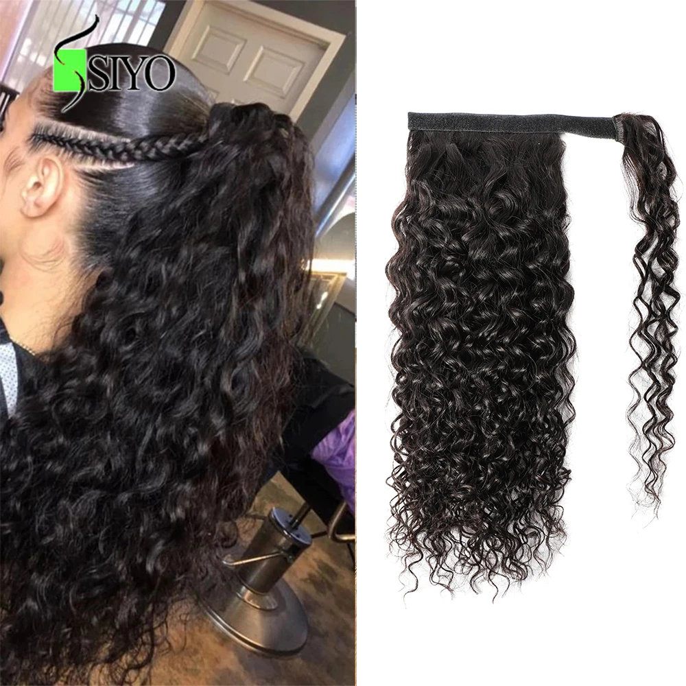 SIYO, волнистые волосы для конского хвоста, бразильские волосы без повреждений вокруг конского хвоста, 100% натуральные человеческие волосы естественного цвета для наращивания черных женщин