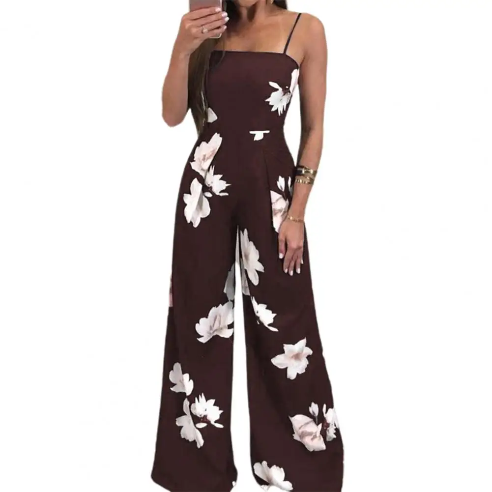 Женский комбинезон с открытыми плечами, летний цельный комбинезон с цветочным принтом и открытой спиной для дома и путешествий