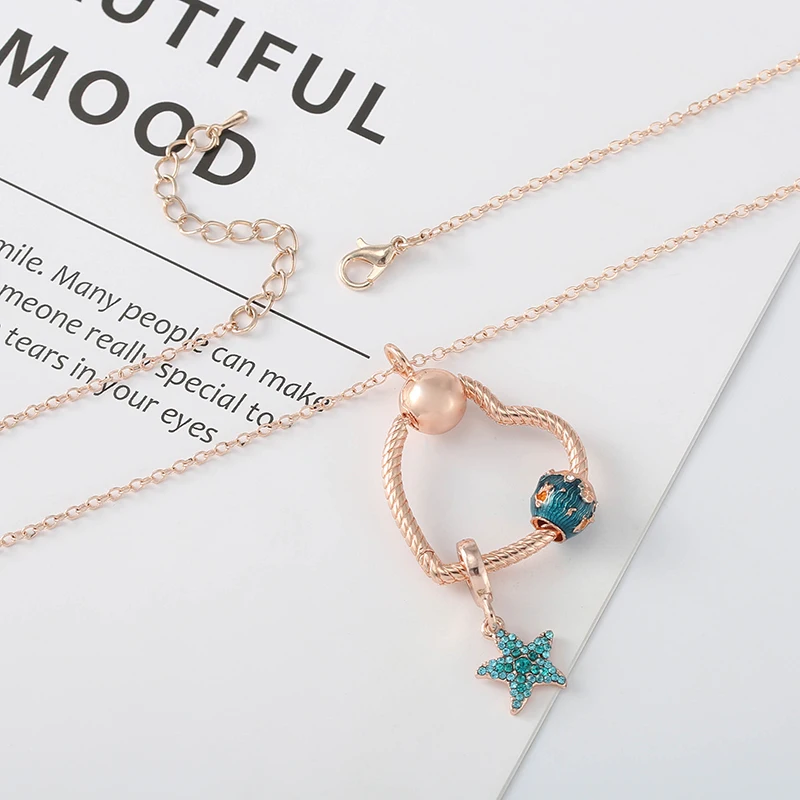 Ожерелье с подвеской в виде морской звезды и бусин для женщин и мужчин, из нержавеющей стали, цвет розы, летнее ювелирное изделие, подарок для матери