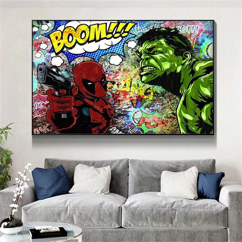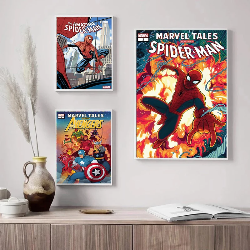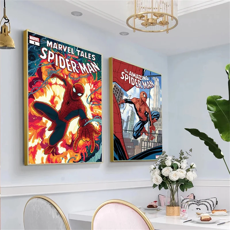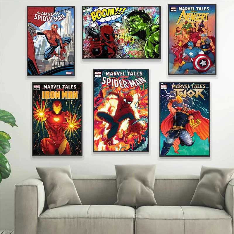 Картина на холсте с супергероями Marvel, красочные комиксы, Человек-паук, Тор, настенное искусство, скандинавские плакаты и принты, картины, декор для гостиной