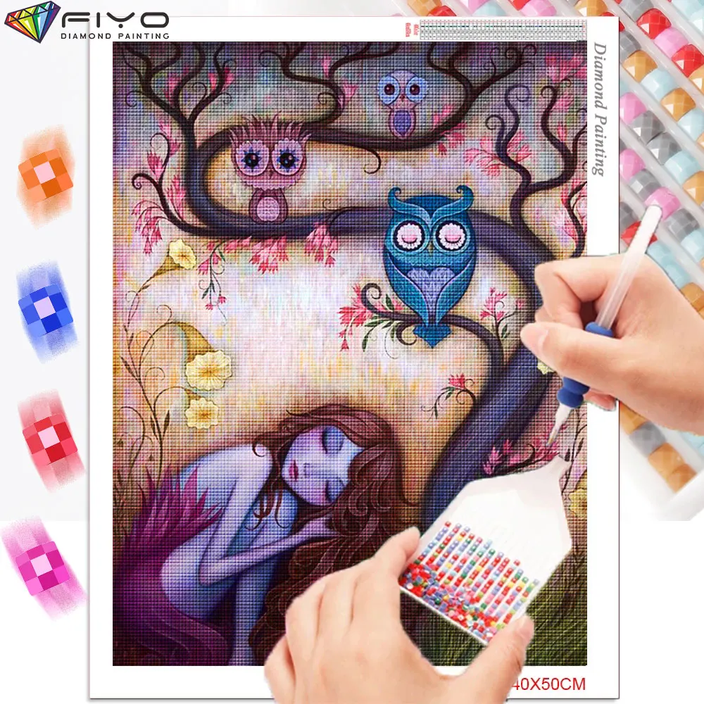 FIYO Алмазная картина крестом полная выкладка, алмазная вышивка, мультфильм, мозаичное украшение стены, вышитая бисером ручной работы подарок