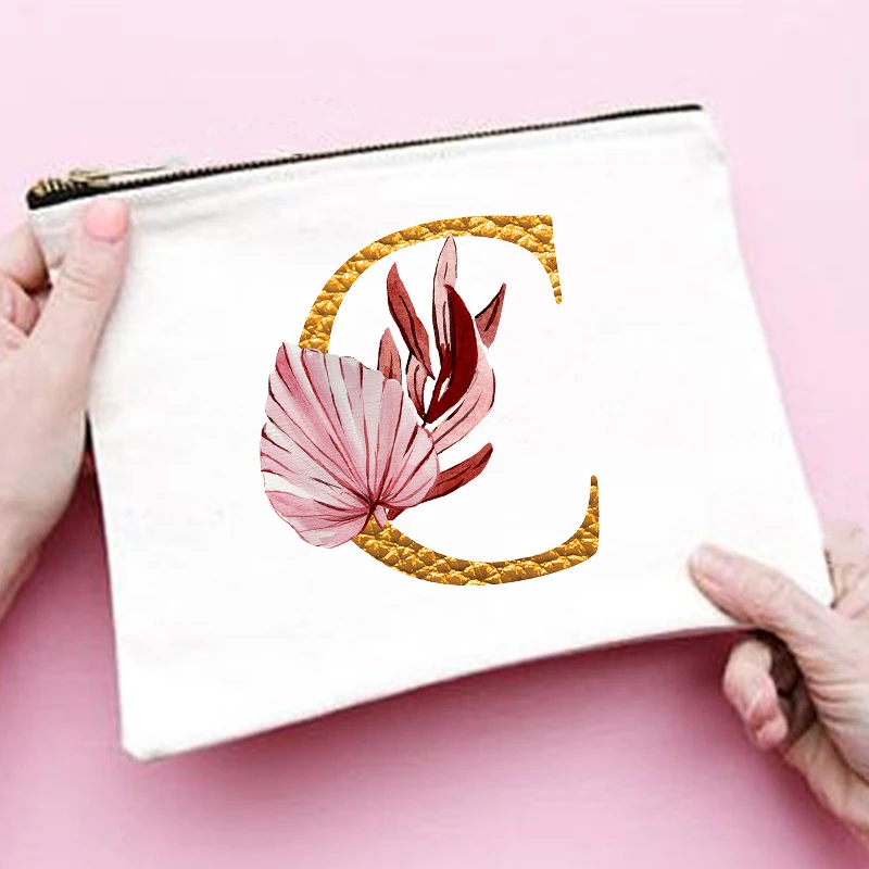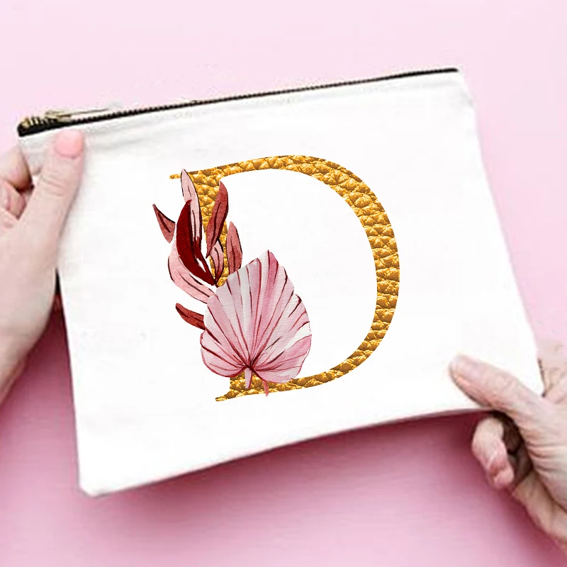 Модные золотые красивые косметички с буквами и цветами, сумка для т...