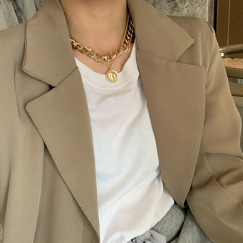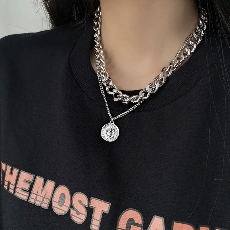 Винтажное резное ожерелье с толстой цепочкой и пряжкой, ожерелье-чокер в богемном стиле и стиле панк с металлическими монетами, модное женское украшение в стиле панк, 2022
