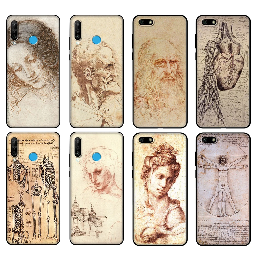 Черный чехол из ТПУ для Huawei Honor 20 Lite, 10, 10i, 20S, 30S, 30, чехол для Honor 7A 5,45, 7s, 7C 5,7, чехол для итальянского Леонардо, да Винчи, Арт