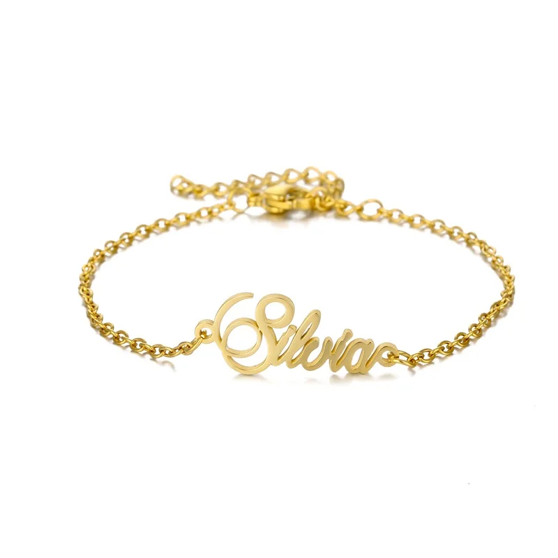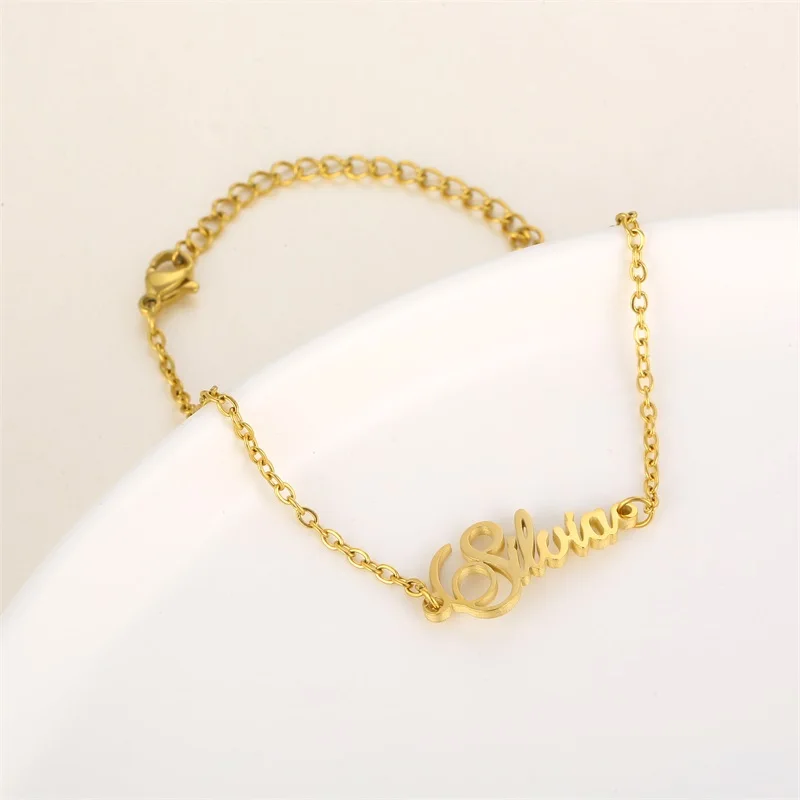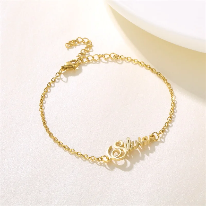 Индивидуальный именной золотистый браслет, нержавеющая сталь, ручна...