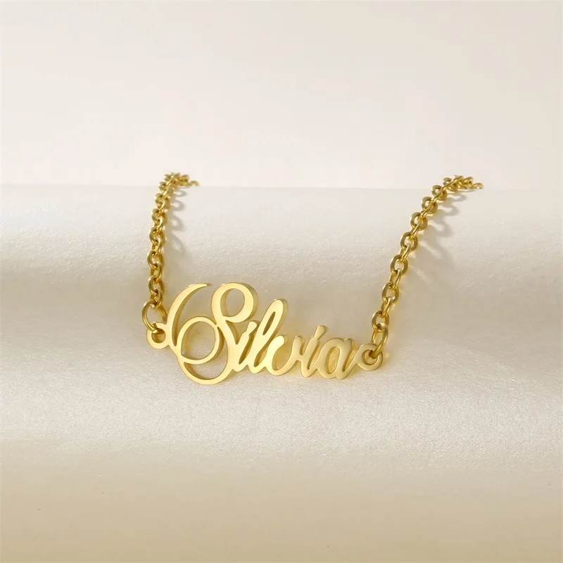 Ожерелье с именем на заказ из нержавеющей стали с золотым наполнением