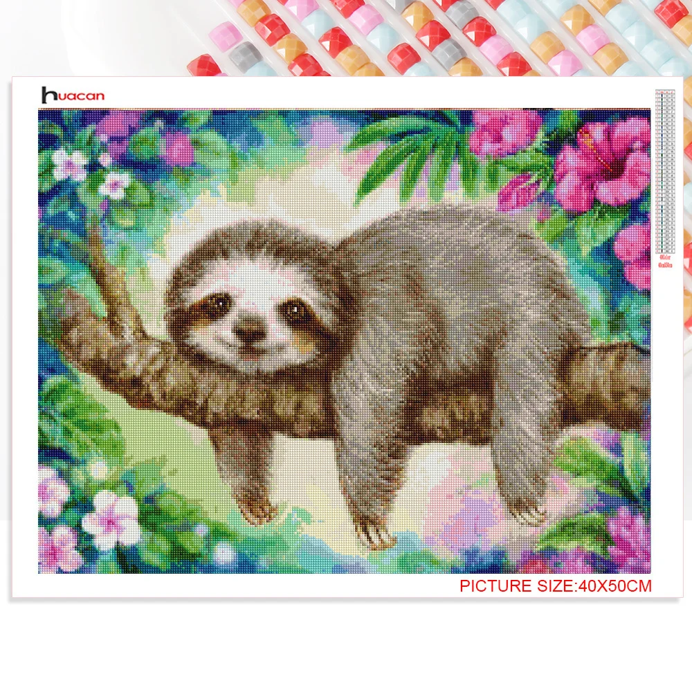 Алмазная вышивка Huacan, мозаика, Ленивец, 5D алмазная живопись, квадратныекруглые животные, модульные картины, творческие увлечения
