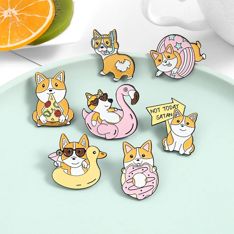Эмалированные заколки для лацканов корги счастливой жизни Мультяшны...