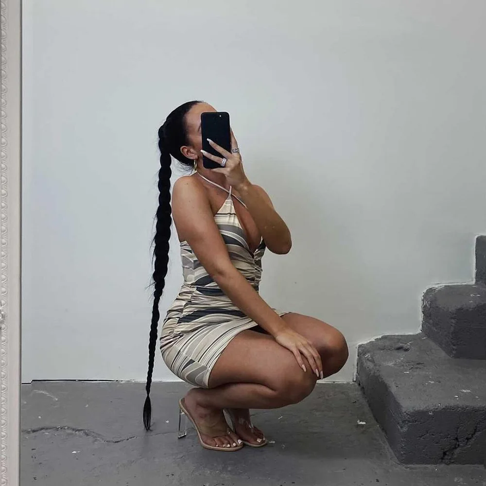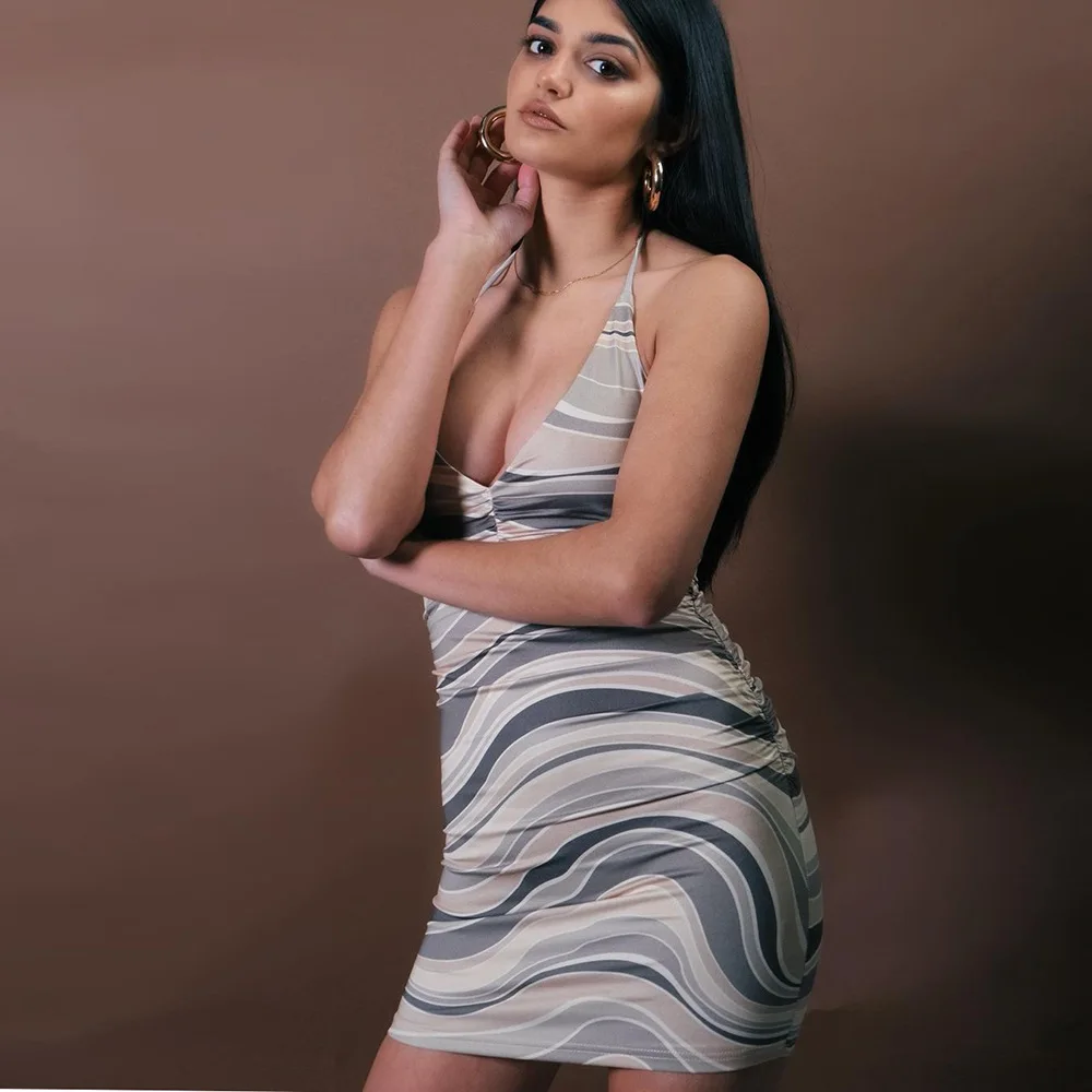 Европейское и американское стильное персонализированное платье 2021 с V-образным вырезом и принтом в виде волн на ягодицах