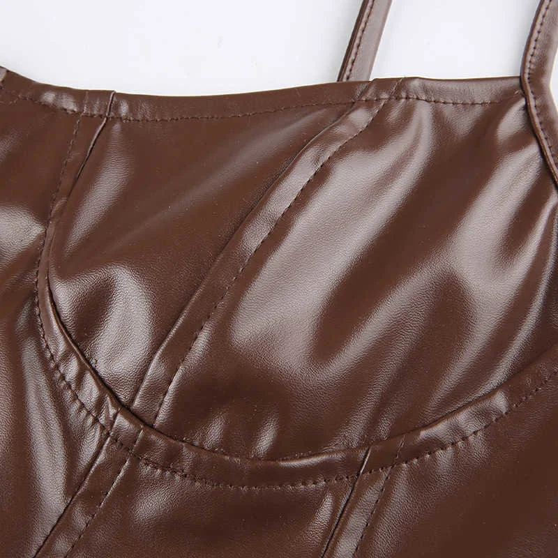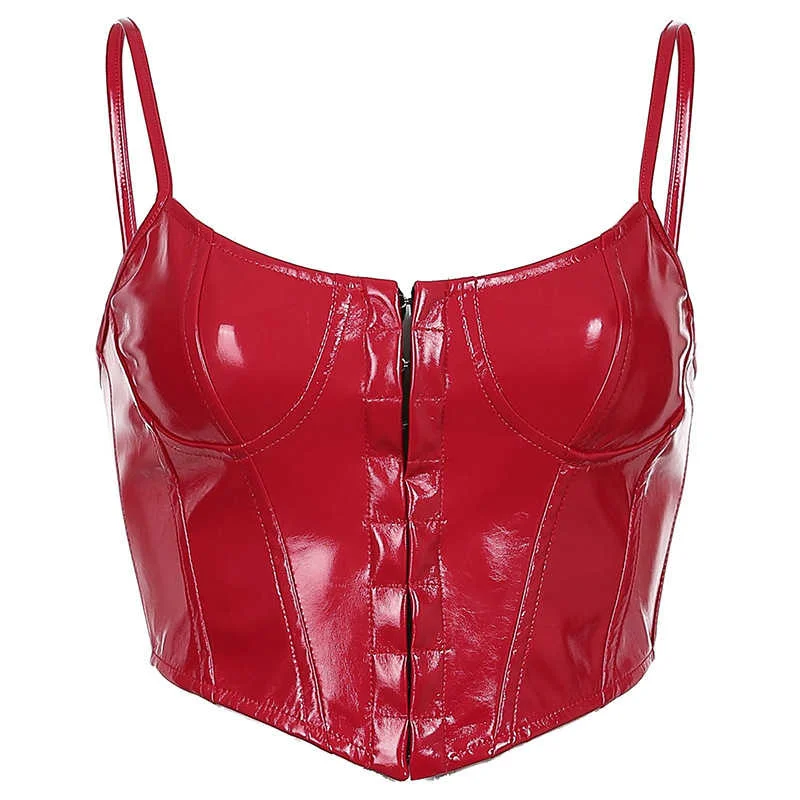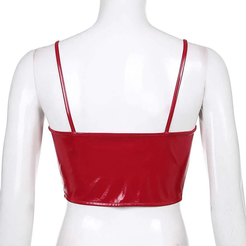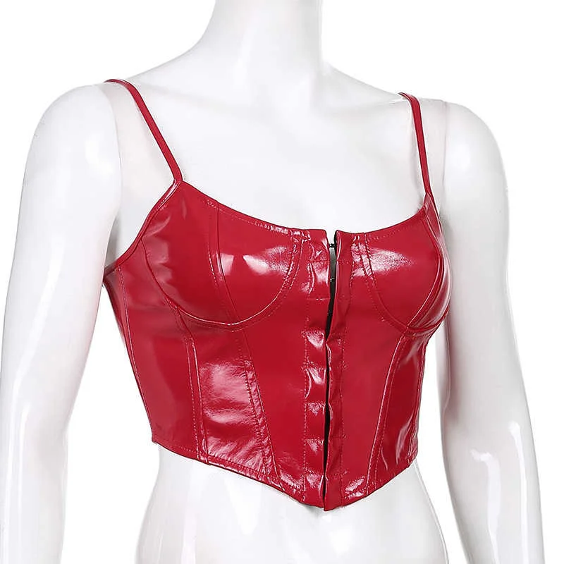 Женский топ-бюстье без рукавов, кожаный топ-майка, укороченный секс...
