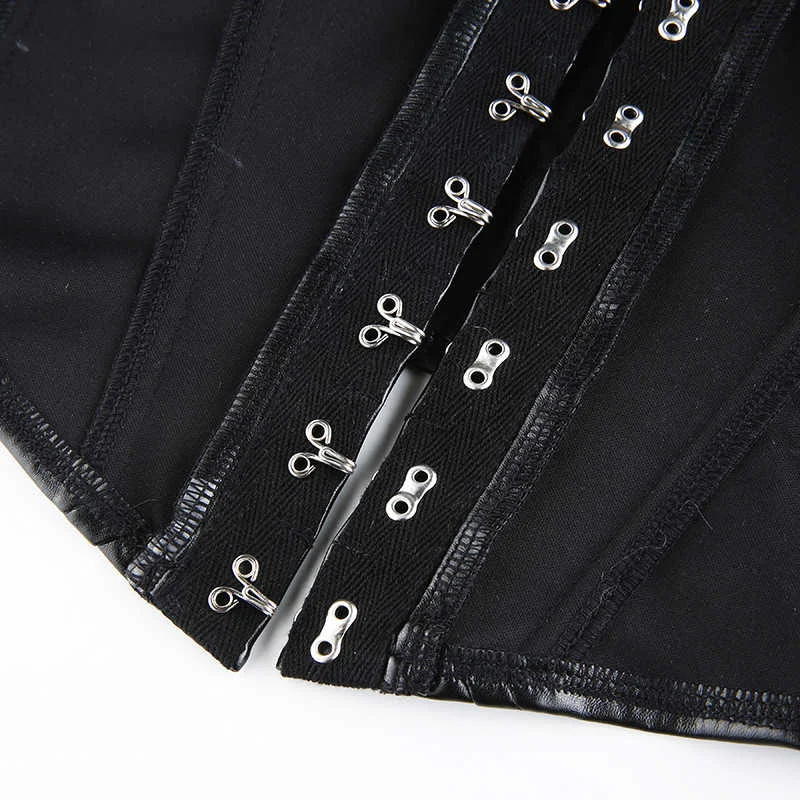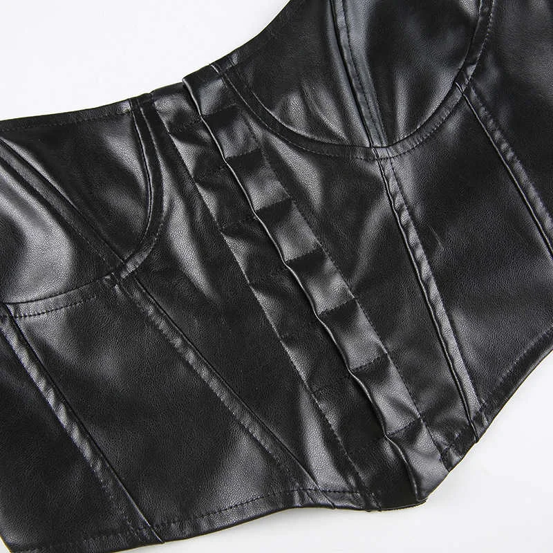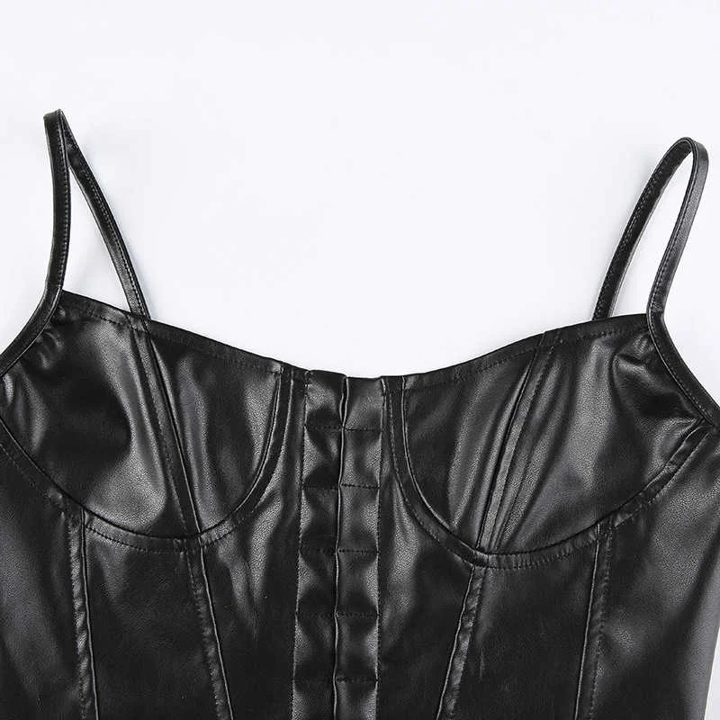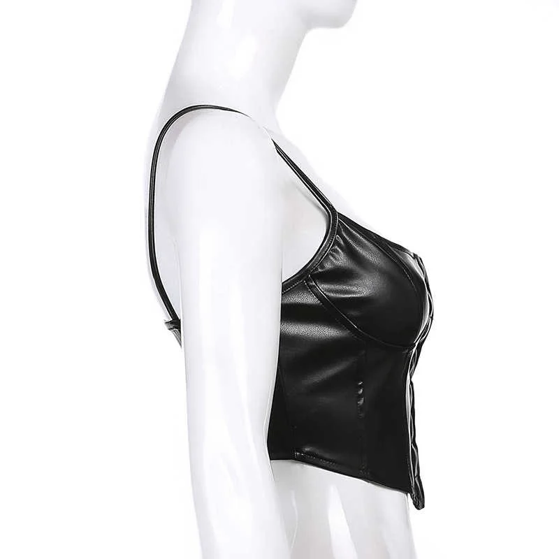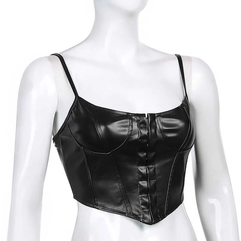 Уличная одежда, Готический Темный укороченный топ из искусственной кожи, Женская майка на пуговицах в стиле панк, топ-корсет, топы для ношения
