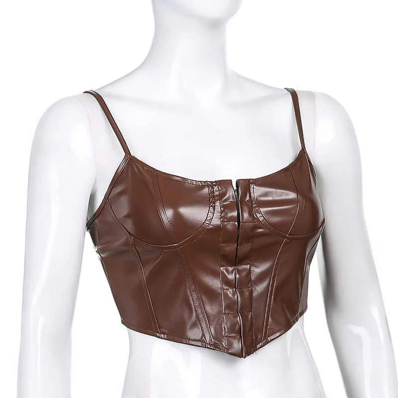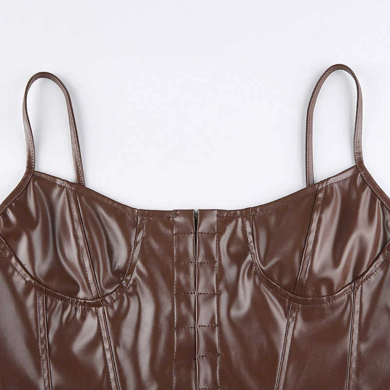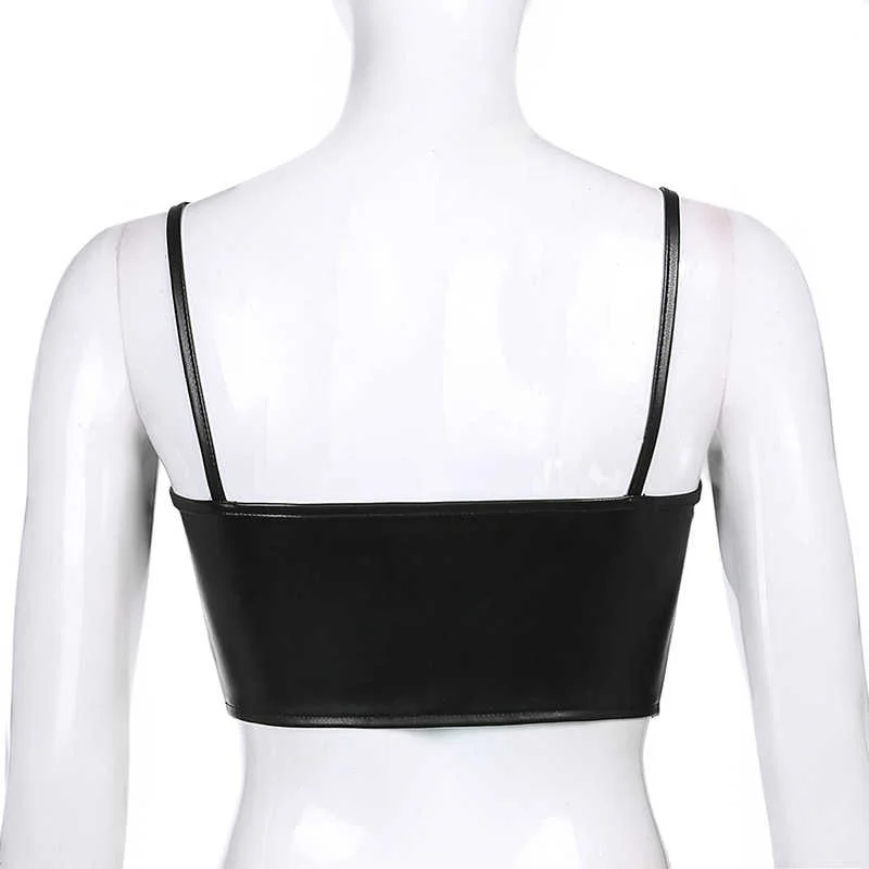 Женский укороченный топ-корсет из искусственной кожи, на тонких бре...