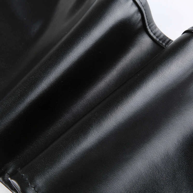 Сексуальный черный укороченный топ из искусственной кожи, Женский к...