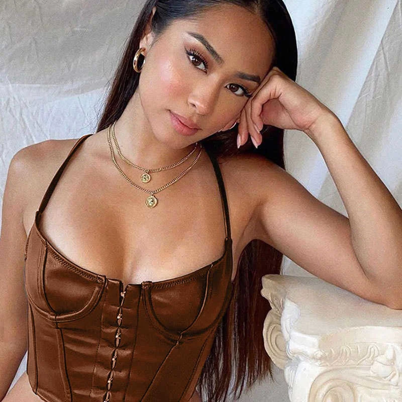 Женский корсет с глубоким вырезом, из искусственной кожи на бретель...