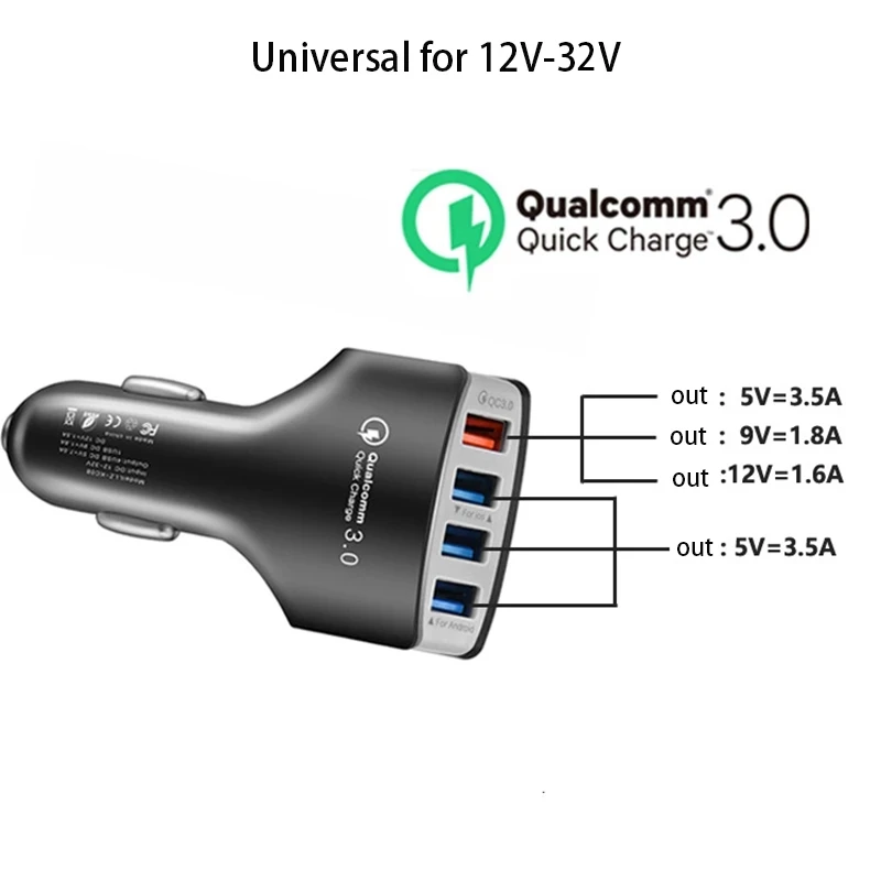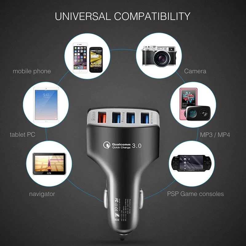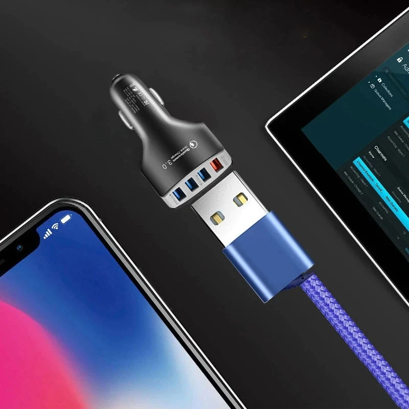 Быстрая зарядка 3,0 автомобильный прикуриватель 7A QC3.0 турбо быстрая зарядка автомобильное зарядное устройство 4 USB автомобильный мобильный телефон зарядное устройство для iPhone 12 для iPhone Xiaomi Mi 9 Redmig Point