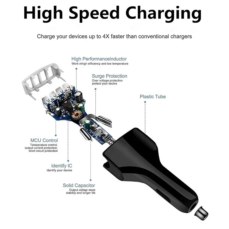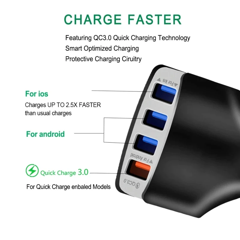 1. Автомобильное зарядное устройство USB с 4 портами: 4 usb-порта позволяют заряжать 4 устройства одновременно