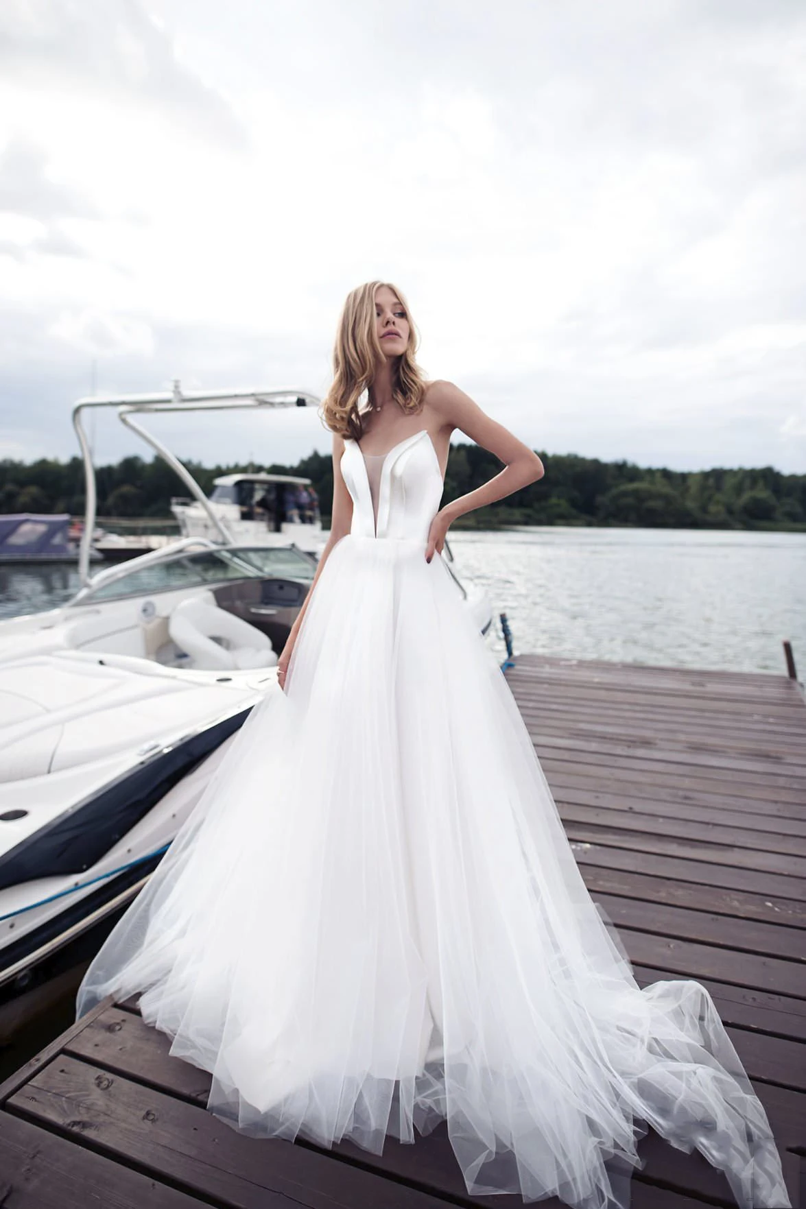 Простые Свадебные платья в стиле бохо, мягкое Тюлевое атласное пляжное свадебное платье, женское длинное платье принцессы для птиц с V-образным вырезом, женское платье