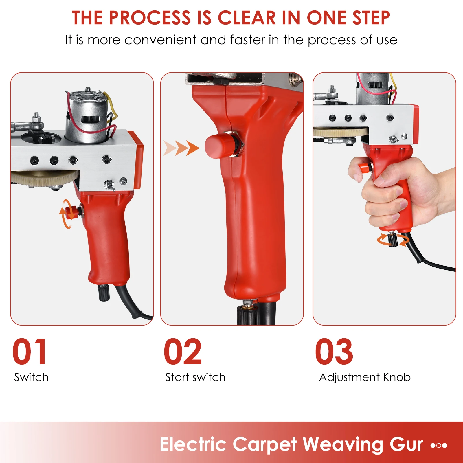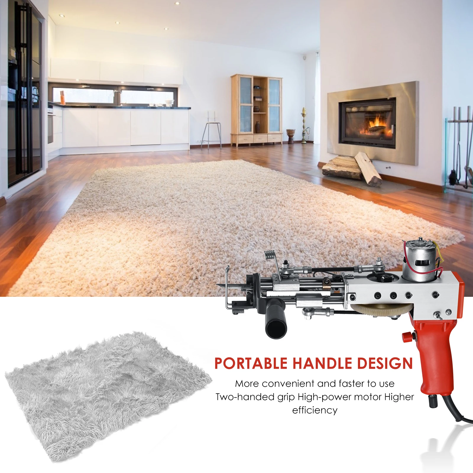 [Легкий и портативный]: Tufted carpet gun-это портативный Электрический инструмент для вязания. Весит всего 2,4 Кг. Вы можете легко поднять его для работы. После использования его также можно хранить в шкафу или чемодане, не занимая слишком много места.