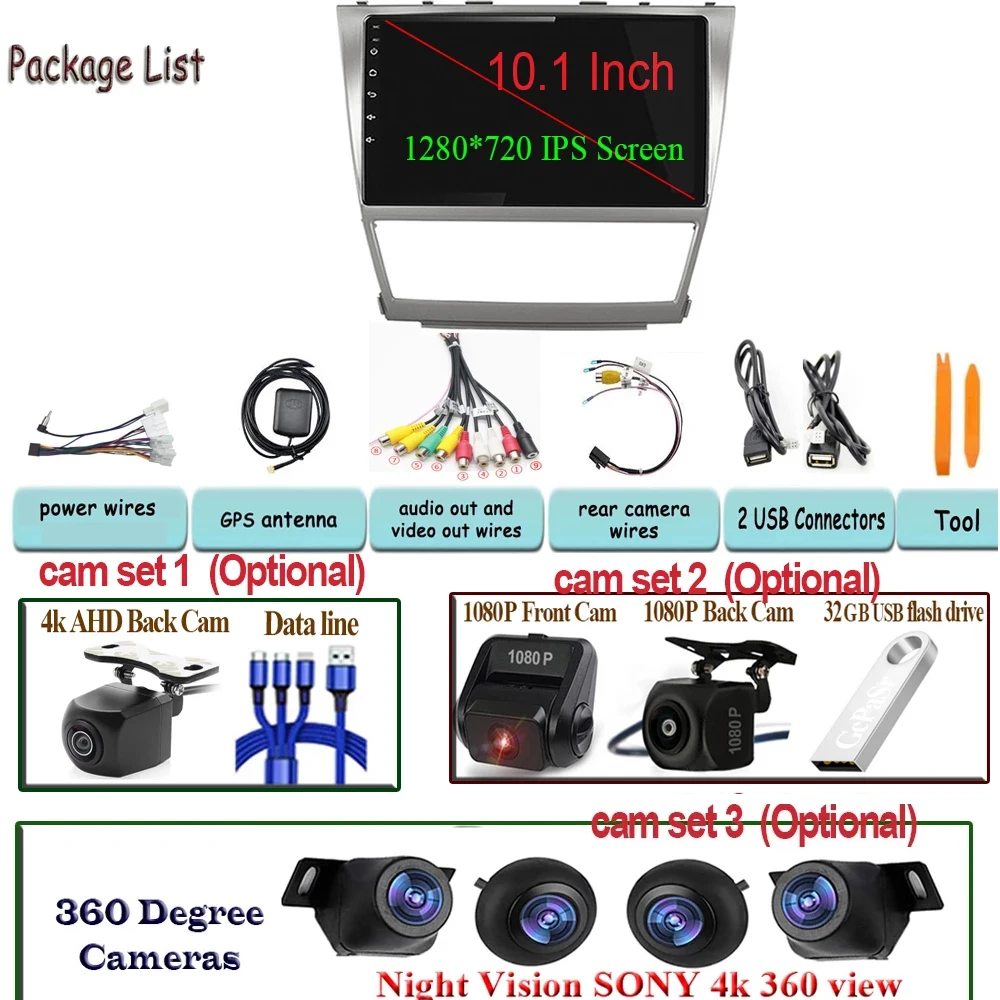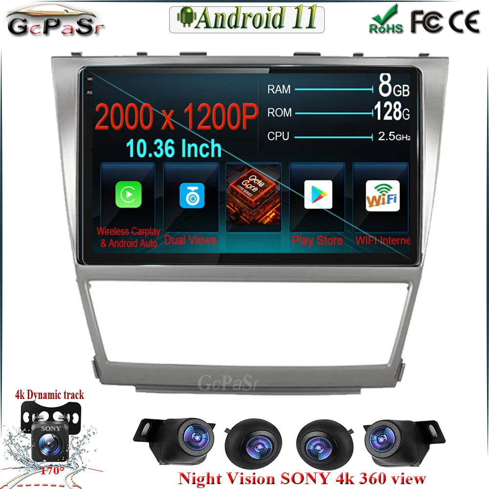 360 камера Android 11 Авторадио Carplay для Toyota camry 6 40 50 2006-2011 мультимедийный видеоплеер Автомобильный навигатор GPS No 2din