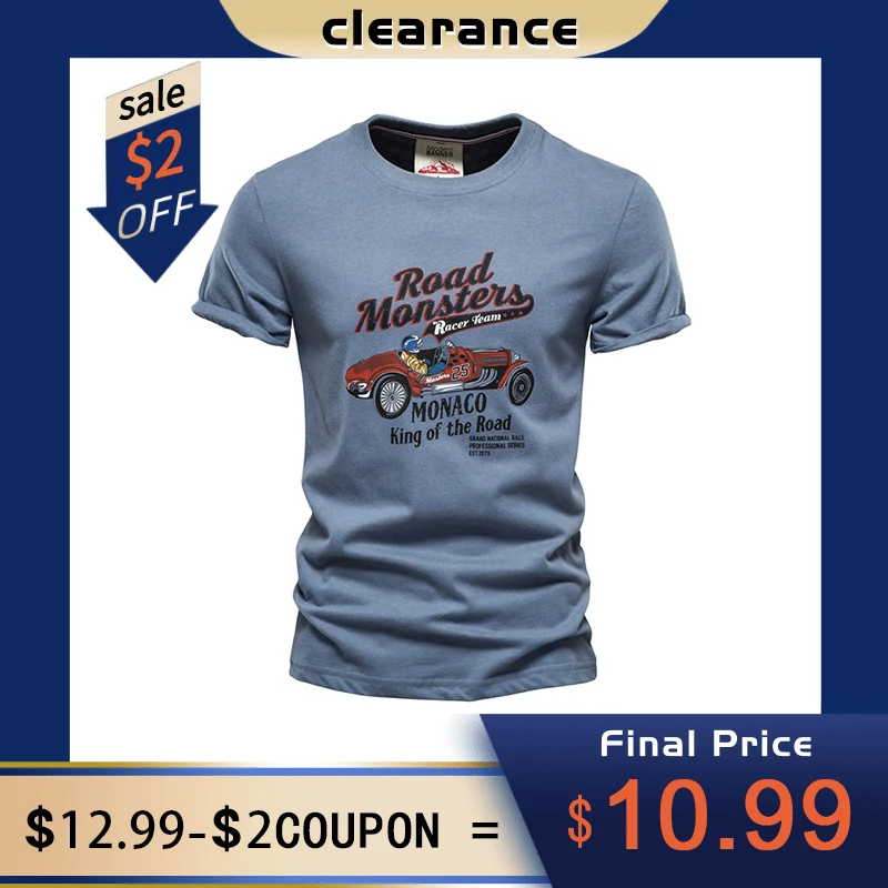 Мужская футболка AIOPESON, из 100% хлопка, с принтом в виде машины, в стиле ретро, новая летняя уличная одежда, футболка с круглым вырезом для мужчин